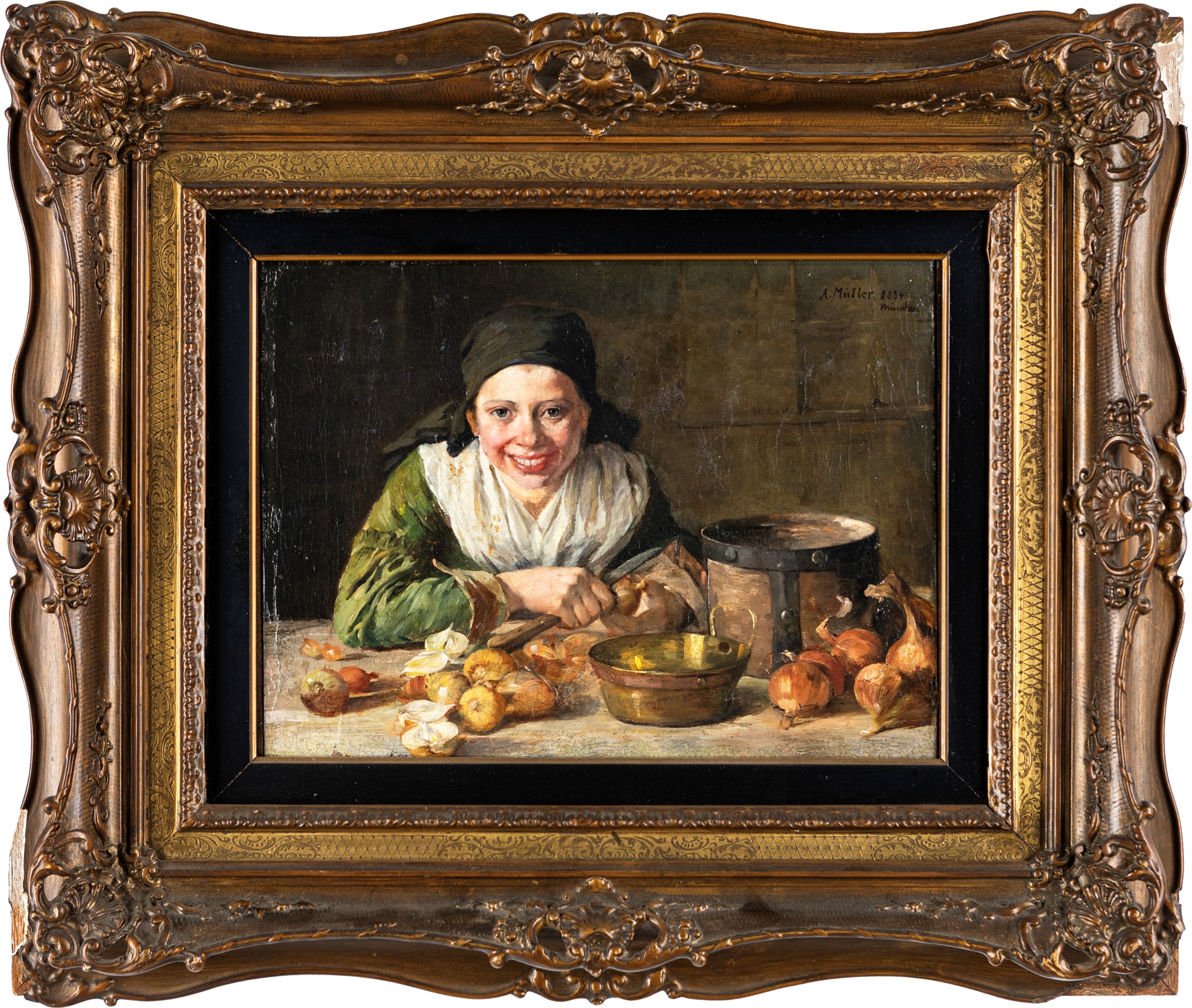 Cuciniera 1884 olio su tela 27,5x36 Firmato e datato in alto a destra "A. Müller 1884 München"