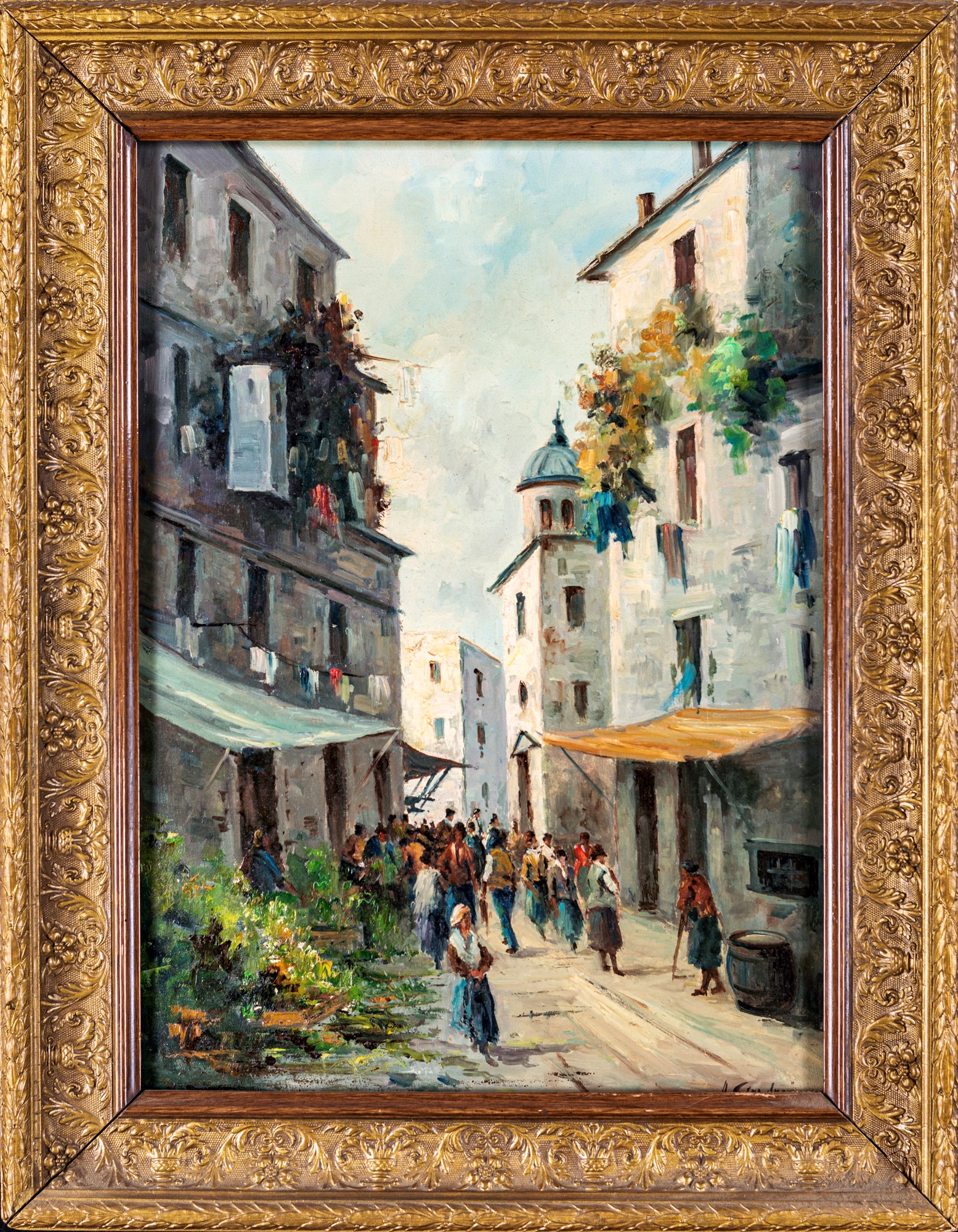 Scena di mercato olio su tela cm 64x46 - in cornice cm 84x65 Firmato in basso a destra "A. Giordani"