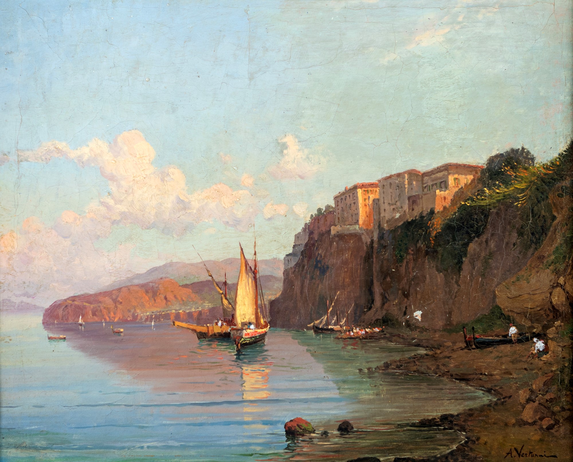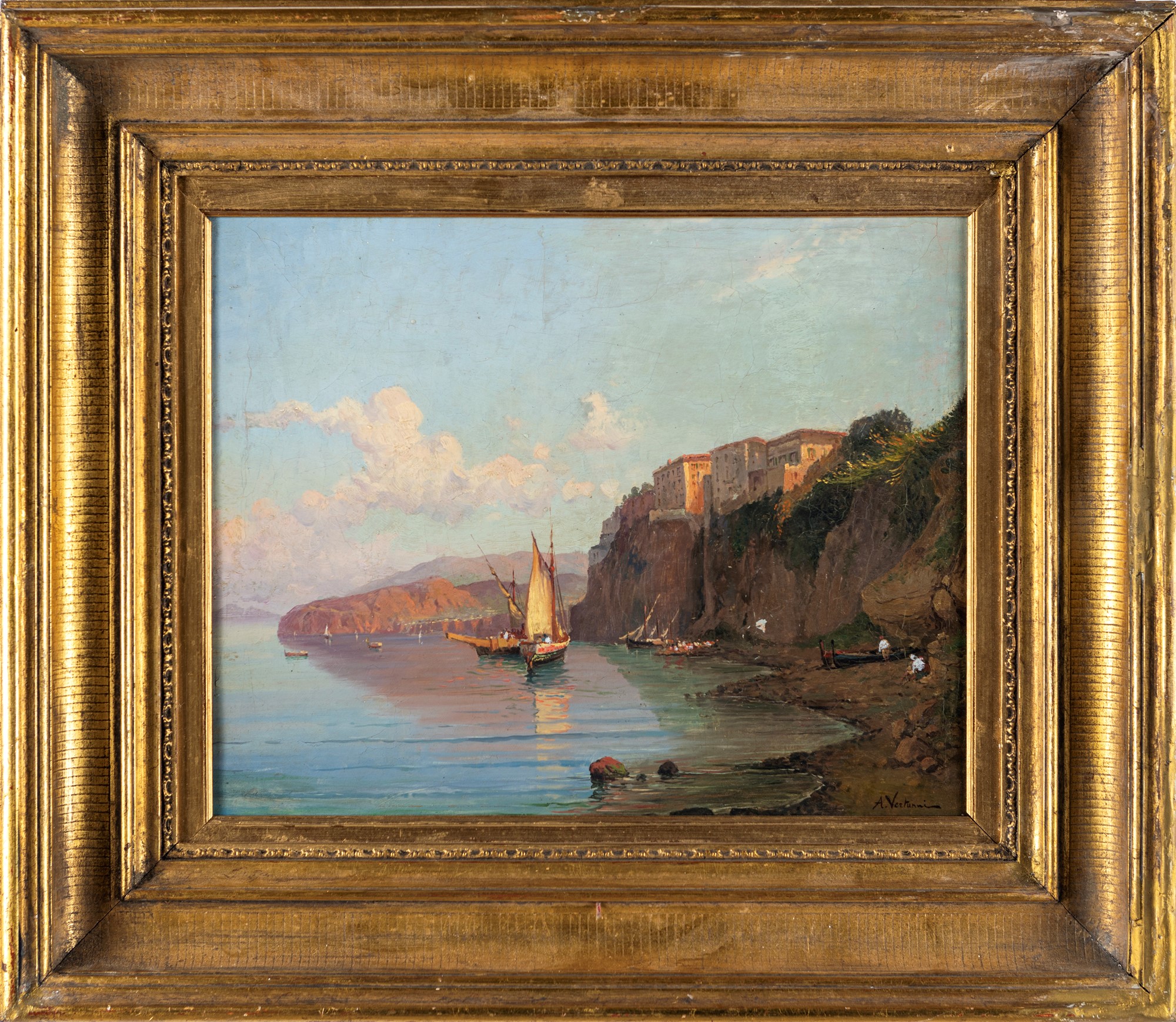 Veduta di Sorrento dal mare olio su tela cm 37x45,5 - in cornice 58,5x67,5 Firmato in basso a destra "A. Vertunni"
