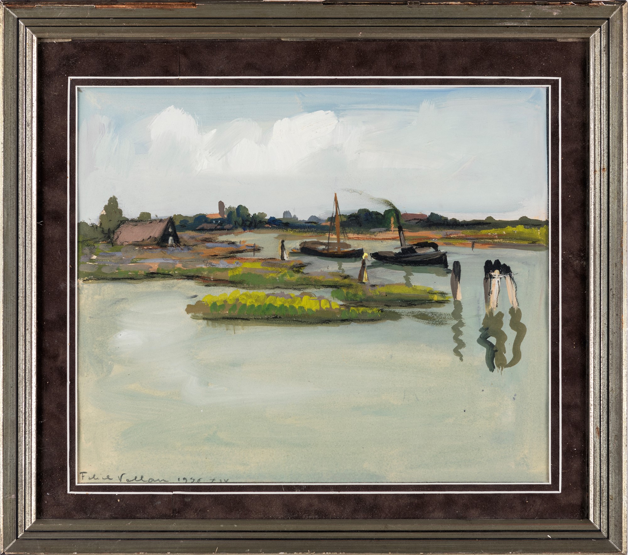 Felice Vellan (1889-1976) Laguna veneta tempera su carta cm 45x52 - in...