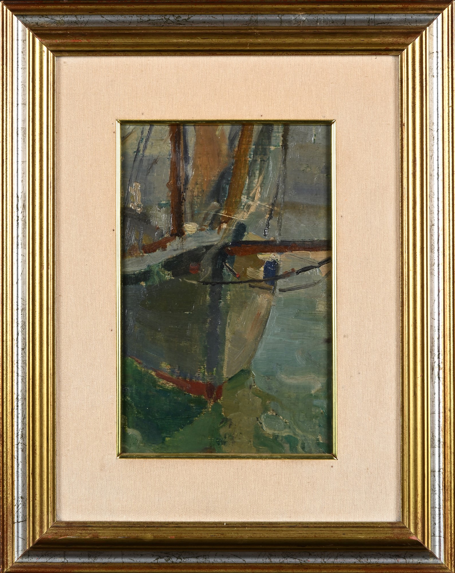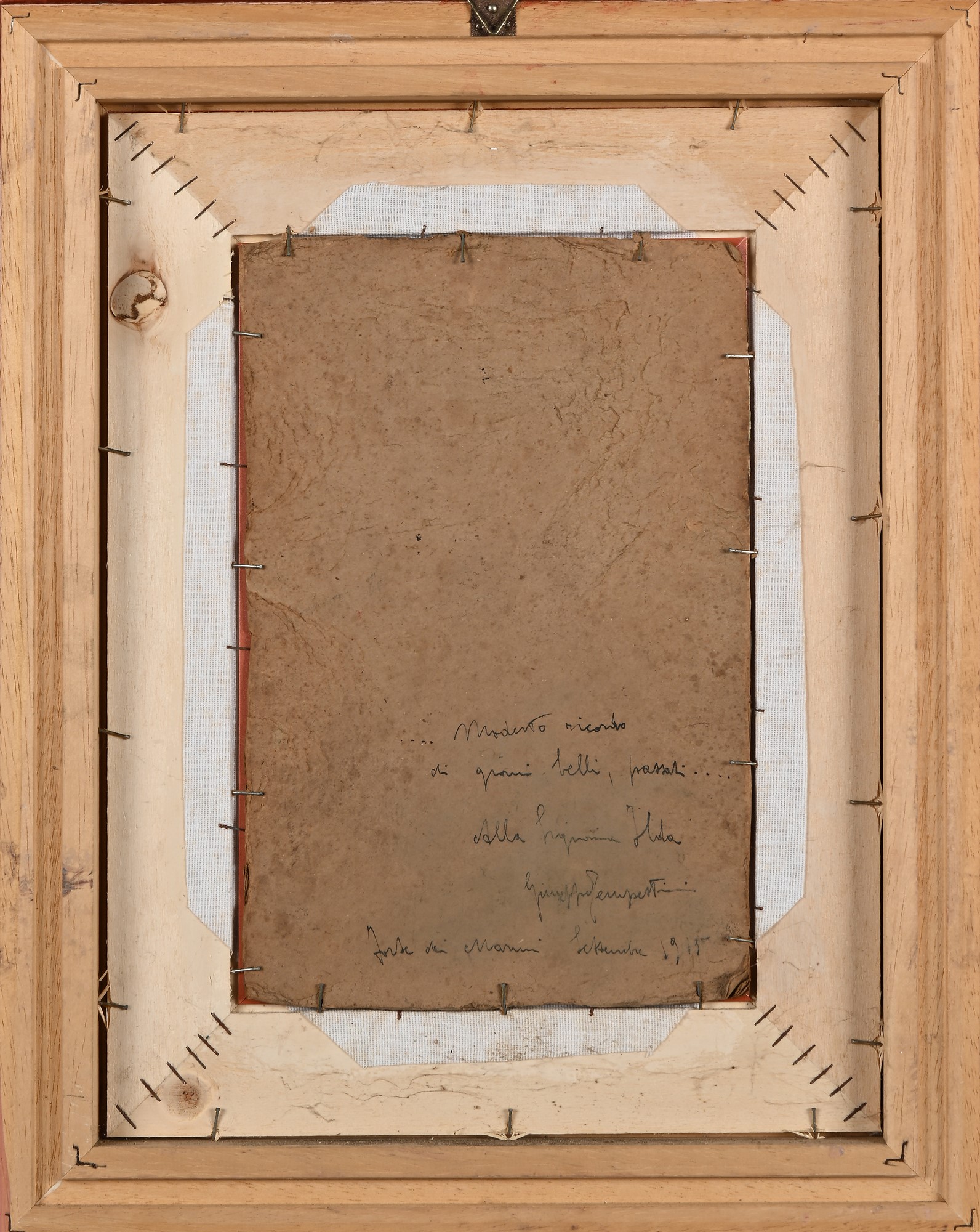 Barca olio su cartone cm 28,5x18,5 - in cornice cm 45x36 Al verso dedica dell'artista datata 1915.