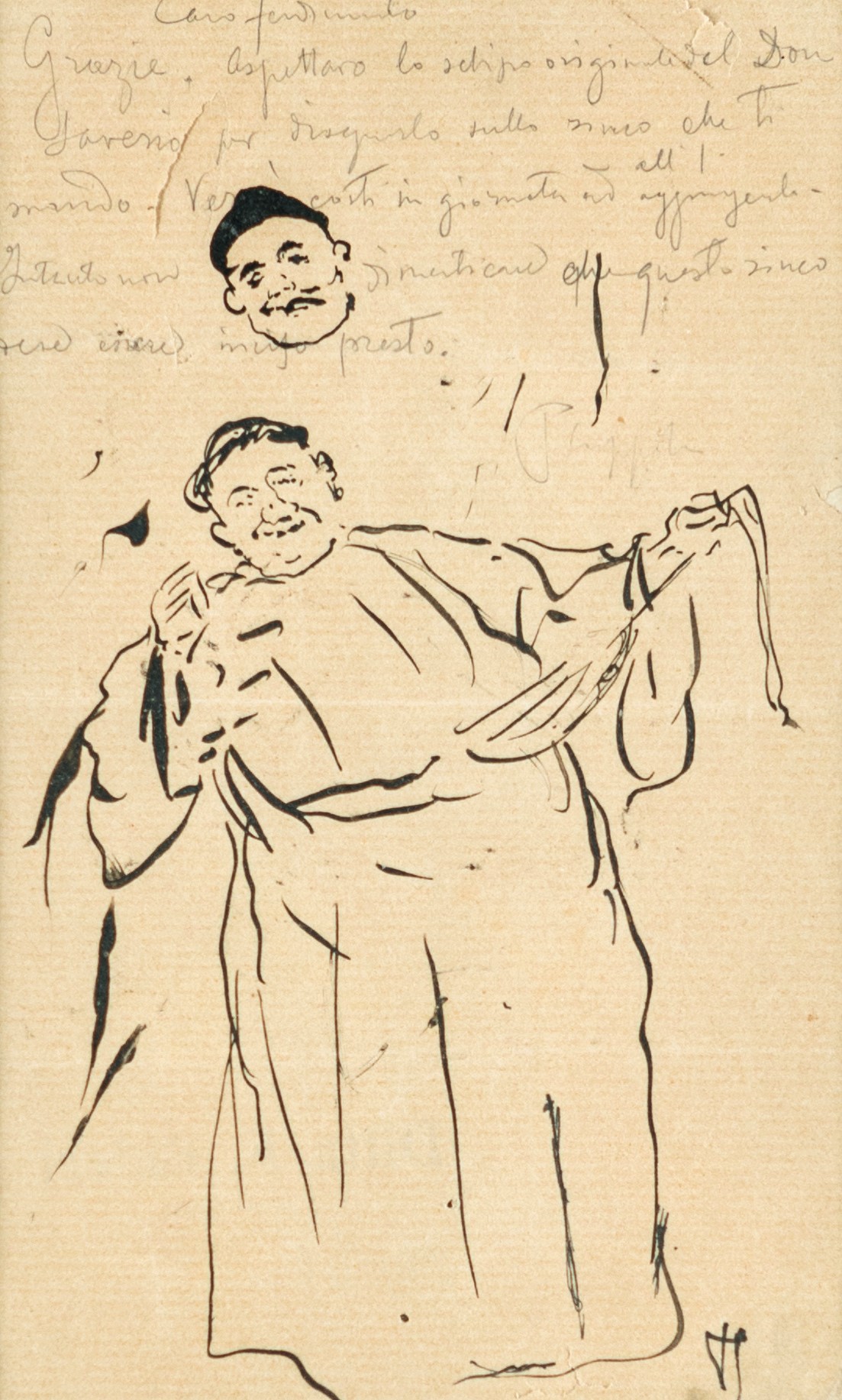 Pietro Scoppetta (Amalfi 1863-Napoli 1920) Studio per Frate inchiostro su...