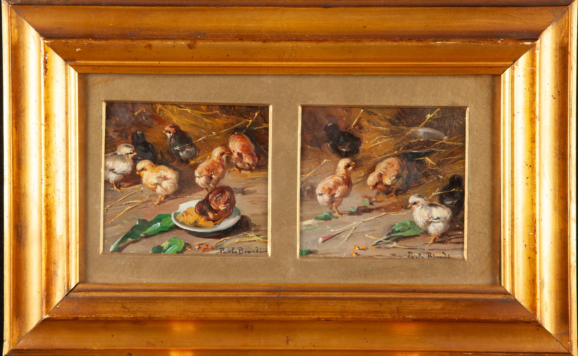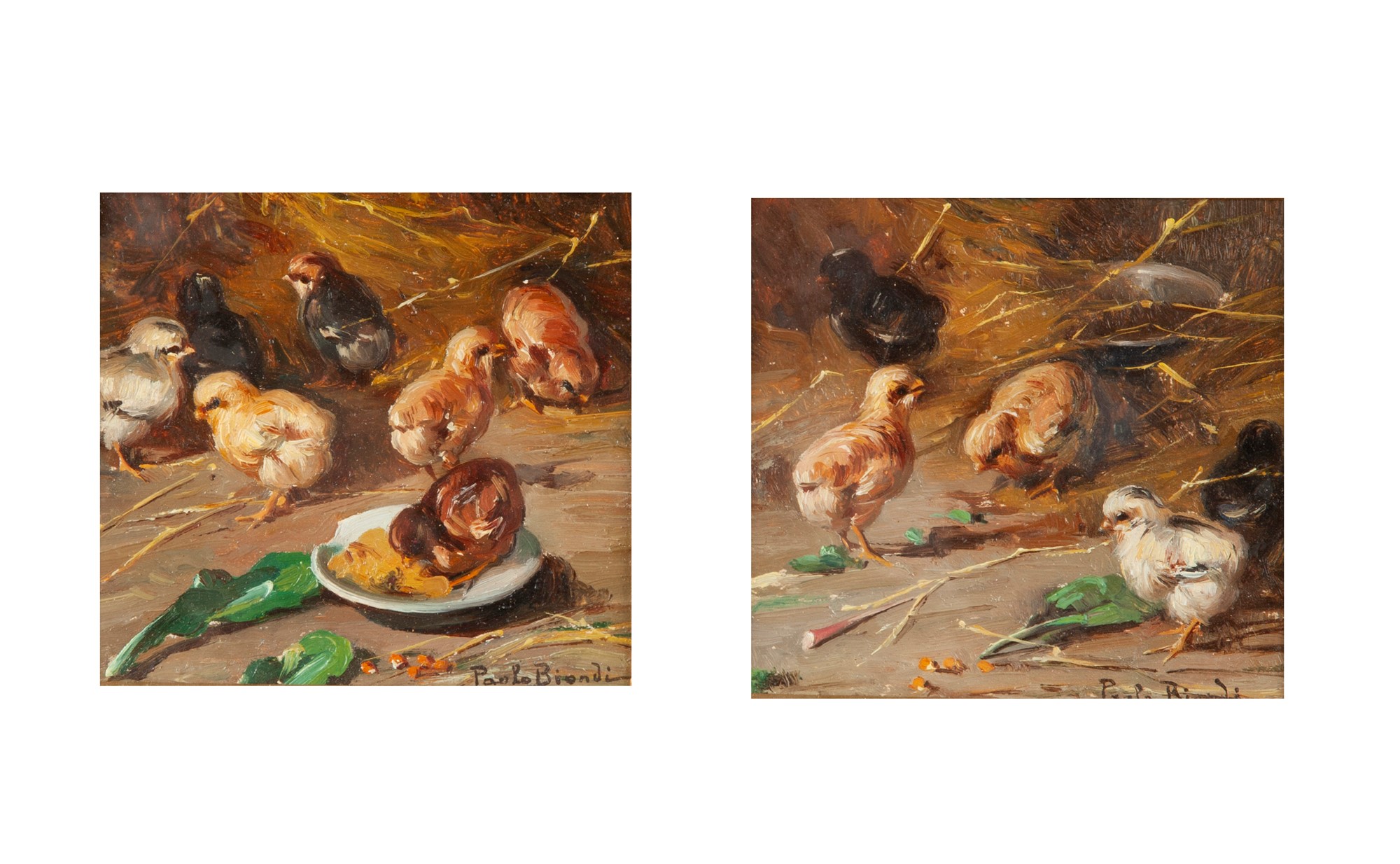 Paolo Biondi (Napoli 1895-Napoli 1962) Pulcini olio su tavoletta cm 10x10...
