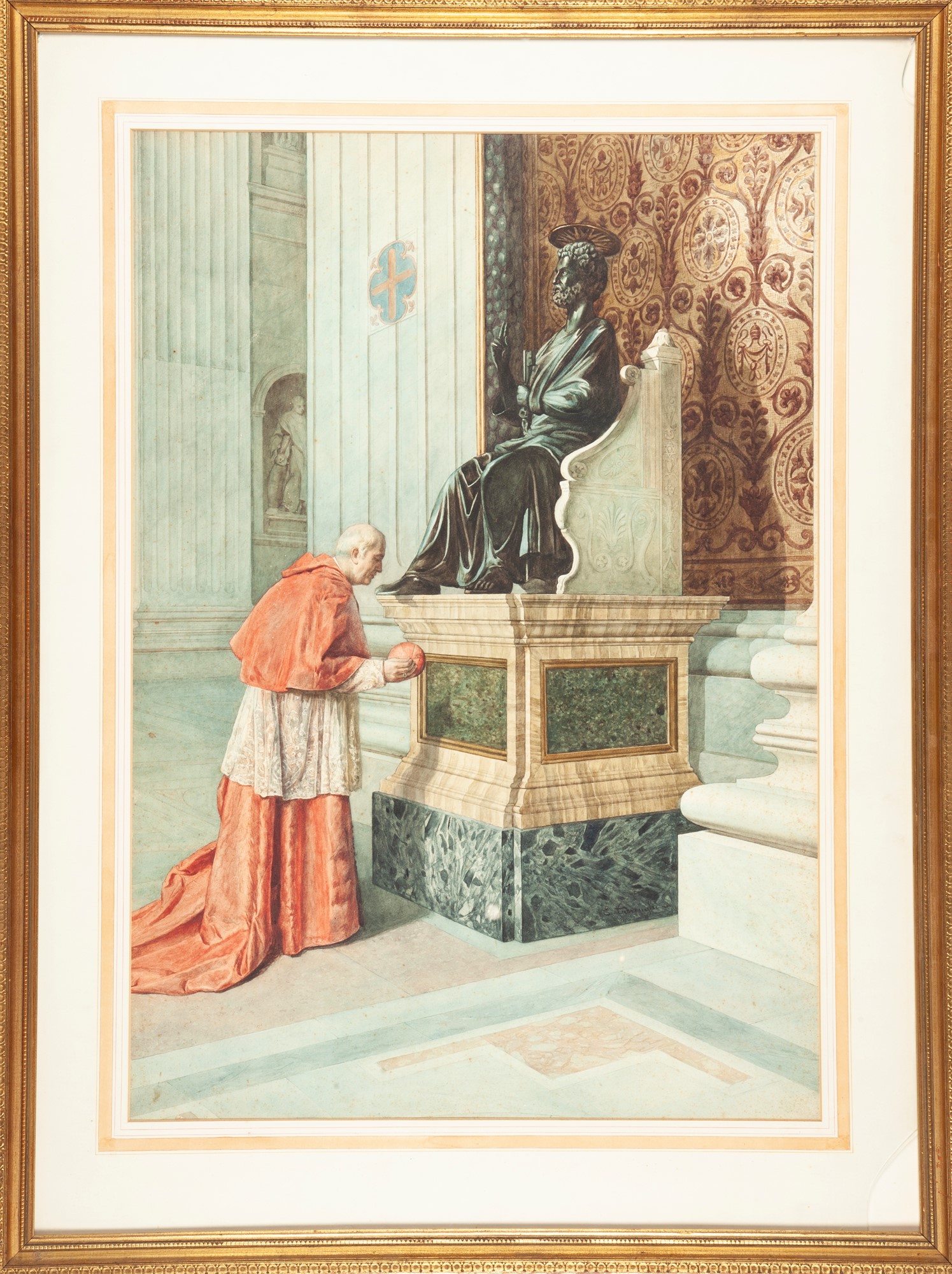 Lotto 539 | Enrico Tarenghi (Siena 1848-Roma 1938) Cardinale a San Pietro acquerello su...