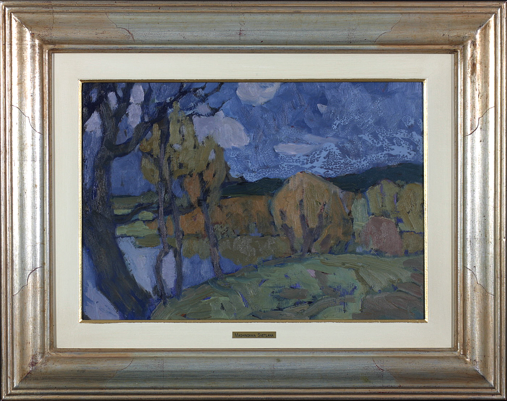 Svetlana Mashinskaja (1921) Dalla collina, 1976 Olio su cartone cm 35x50...