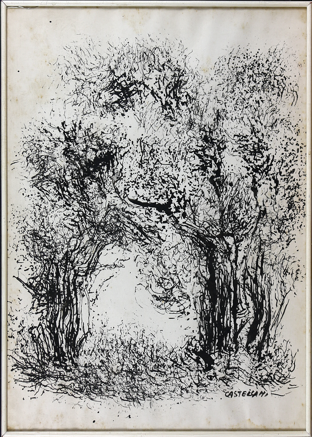 Enrico Castellani (1930) Senza titolo, 1950 ca China su carta cm 70x50 Firma...