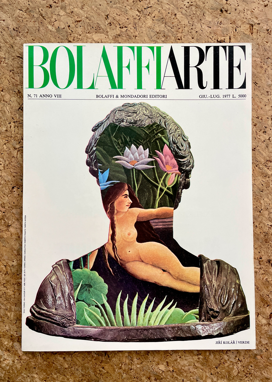 Catalogo riccamente illustrato contenente una fotolitografia a quattro colori di Jiří Kolář dal titolo 'Verde', espressamente eseguita per la collezione 'I colori dell'Arcobaleno' di Bolaffi Arte e recante firma dell'Artista al fronte e numerazione al retro (Esemplare 872/5000)