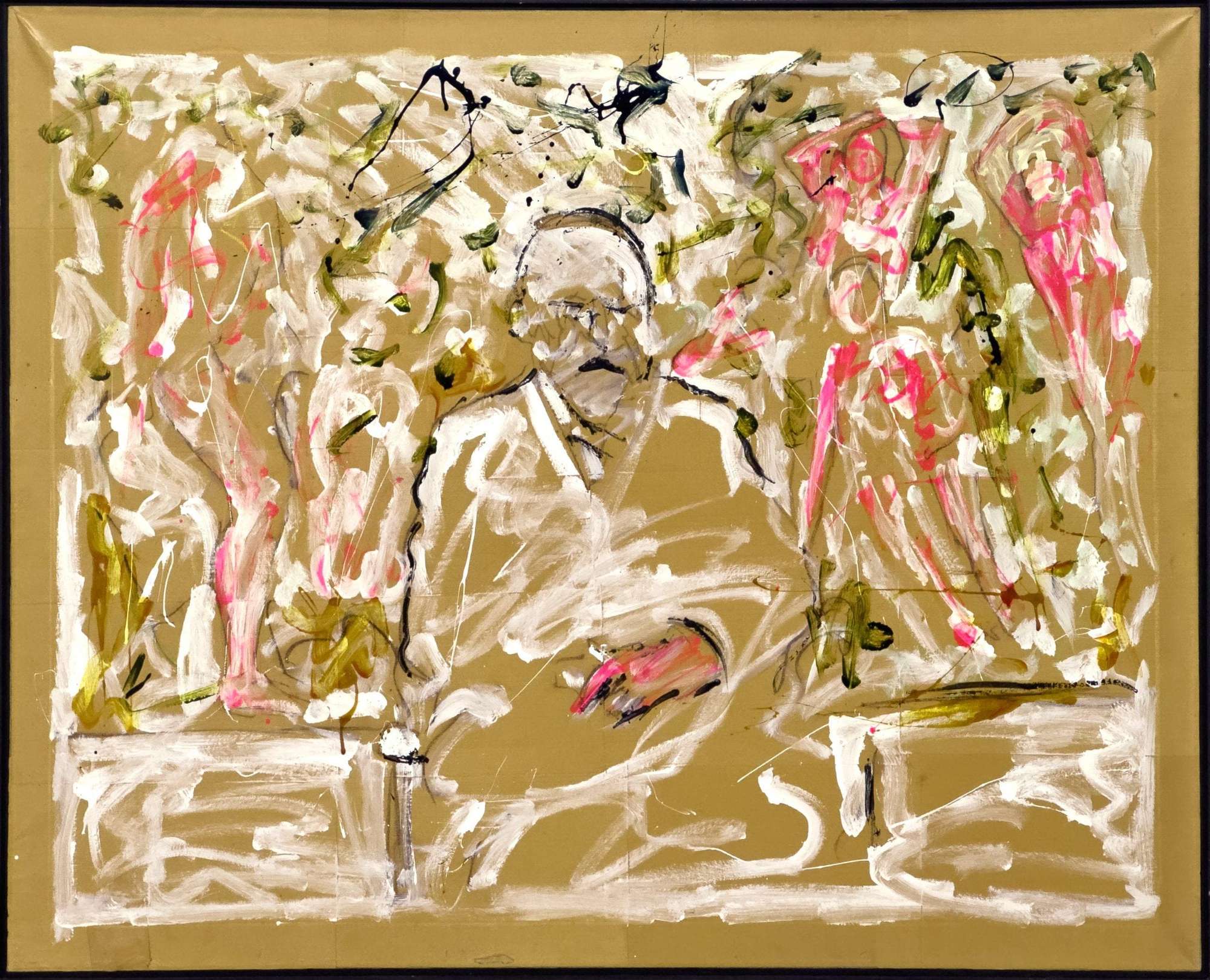 Mario Schifano, Senza titolo (Maestro francese), 1982, smalto e pastello su carta applicata su tela.