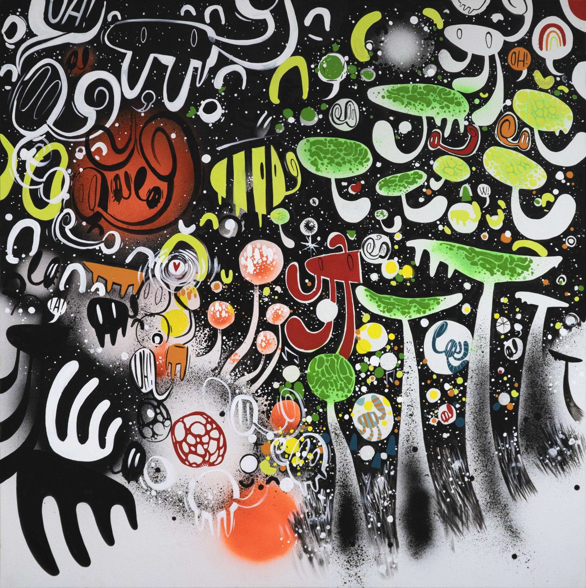 Willow, Shrooms, 2023, smalto su tela, cm 100x100, autentica a cura dell'artista