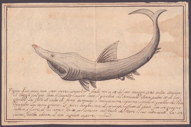 Figura di un pesce raro preso mezzo istupidito fralle retti a 14 del corr. maggio 1795 nella Marina di Reggio...
