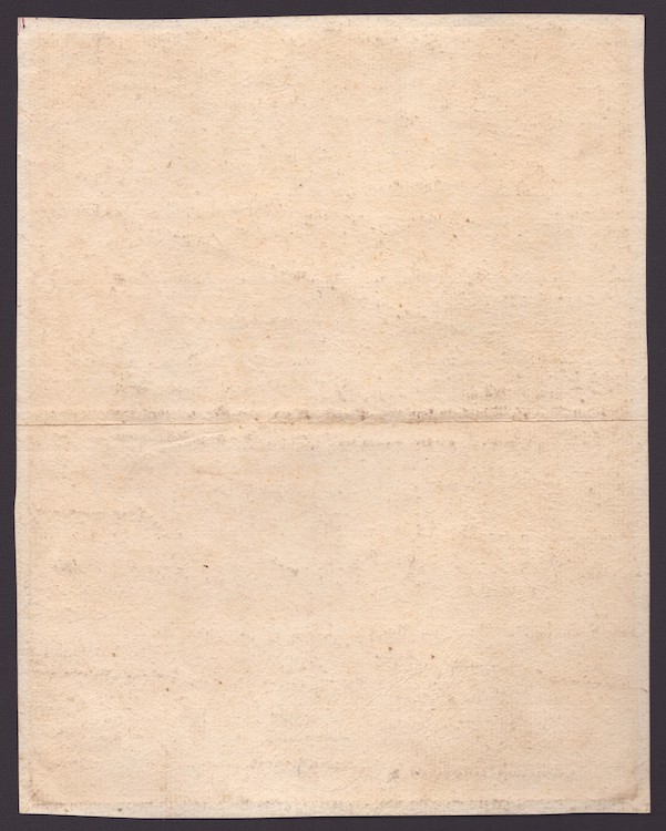 Esemplare mancante circa 3 cm nella parte superiore. Controfondato su un foglio di carta vergata spessa. In discrete condizioni.