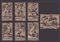Lotto di 7 incisioni a bulino, 45 x 25 mm ca. cad.