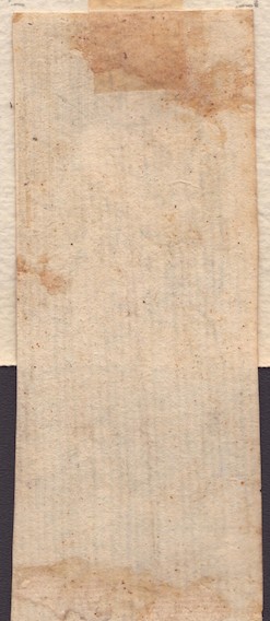 La prima è una bella impressione su carta vergata con un frammento di filigrana. Esemplare rifilato, con piccolo margine inferiore e superiore. Una macchia da colla in alto a sinistra.