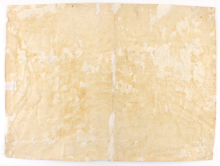 Stampata su carta vergata. Esemplare in discreto stato di conservazione con numerosi restauri e alcune mancanze, segni di inchiostro blu. In generale l'immagine è completa.