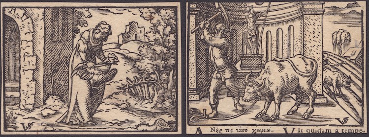 Virgil Solis (1514-1562). Donna che macella un gallo | Uomo che macella un bullo