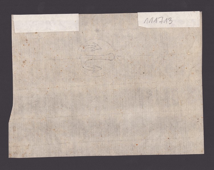 Impressa su carta vergata molto sottile con filigrana (ancora entro un cerchio). Esemplare rifilato, con mancante una parte del margine inferiore.