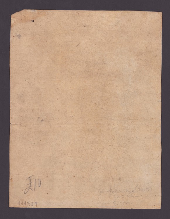 Bella impressione su carta vergata con filigrana. Esemplare rifilato. Carta uniformemente ossidata, una piccola mancanza all'angolo superiore a destra. Un piccolo foro in alto a destra. Traccia di una piega orizzontale poco visibile e un brevissimo strappo sulla piega. Per il resto in buono stato.