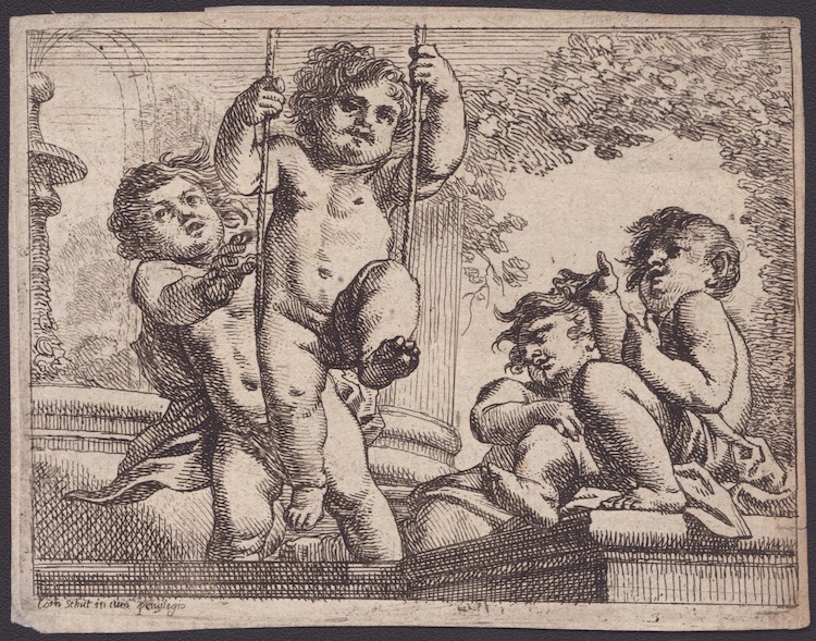 Cornelis Schut (1597-1655). Quattro putti nudi con altalena