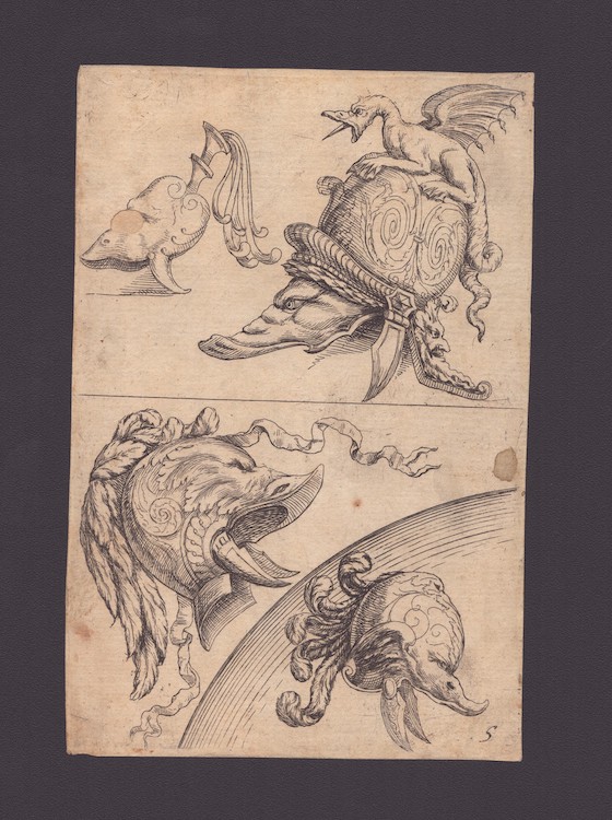 Studi per gli elmi grotteschi, XVII secolo