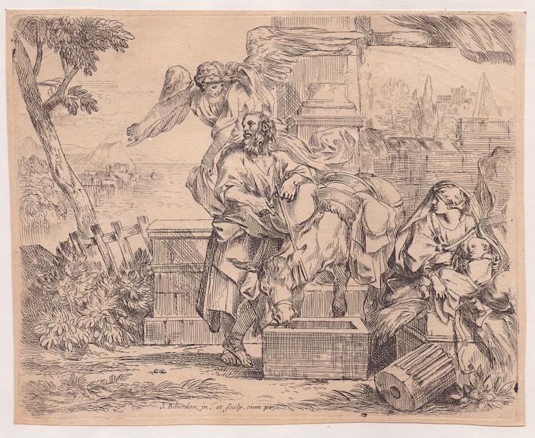 Sébastien Bourdon (1616-1671). Fugo in Egitto con l'Angelo