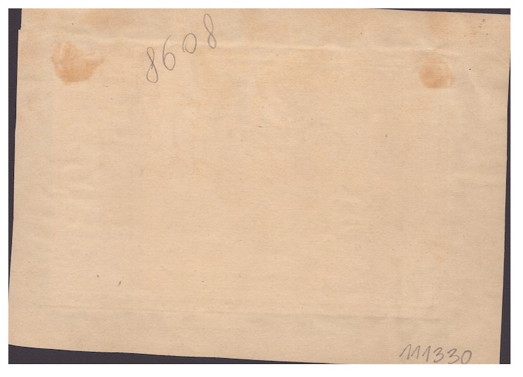 Bella, fresca impressione su carta vergata. Esemplare in ottimo stato, ma incollato in due punti su foglio di carta moderna.