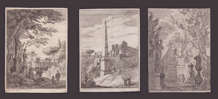 Lotto di tre incisioni. Acquaforte, 245 x 180 mm ca. (cad.)