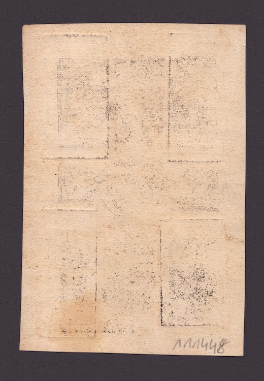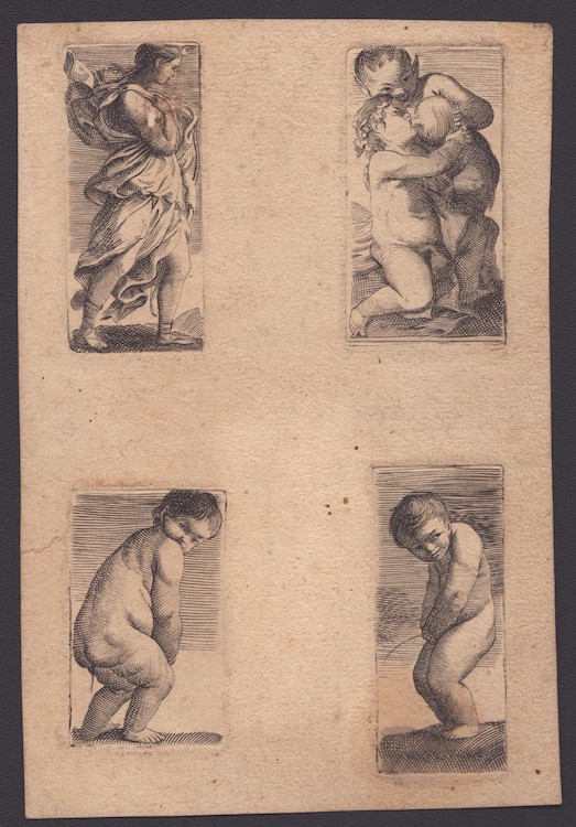 4 incisioni ad acquaforte stampate su un unico foglio, 61 x 27; 59 x 31; 51 x 31; 61 x 26 mm (lastre), 160 x 107 mm (foglio).