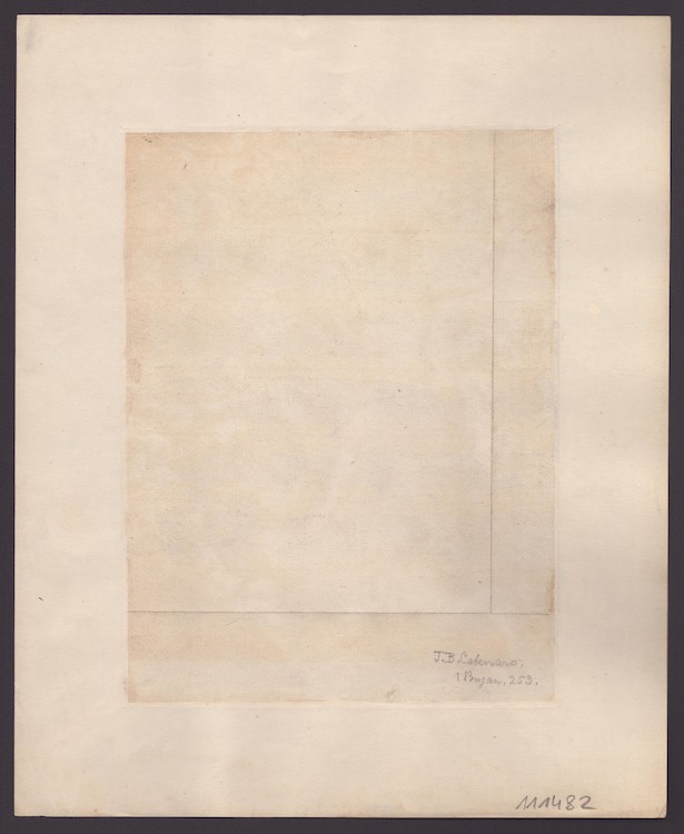 Splendida impressione su carta vergata. Esemplare rifilato, incollato lungo al filo di bordo su passe-partout.