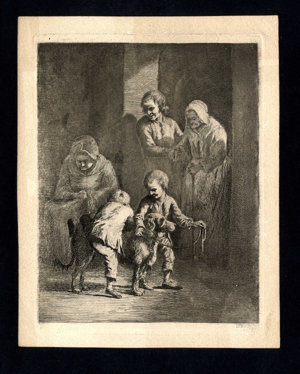 Jean Jacques de Boissieu (1736-1810). Bimbi con cane al guinzaglio