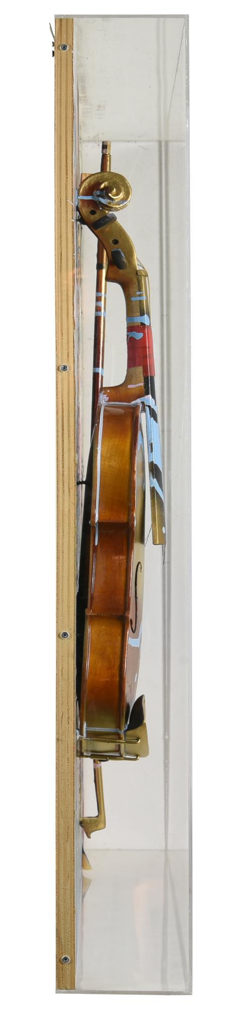 applicazione di violino e tecnica mista su tavola, cm 90x81x11