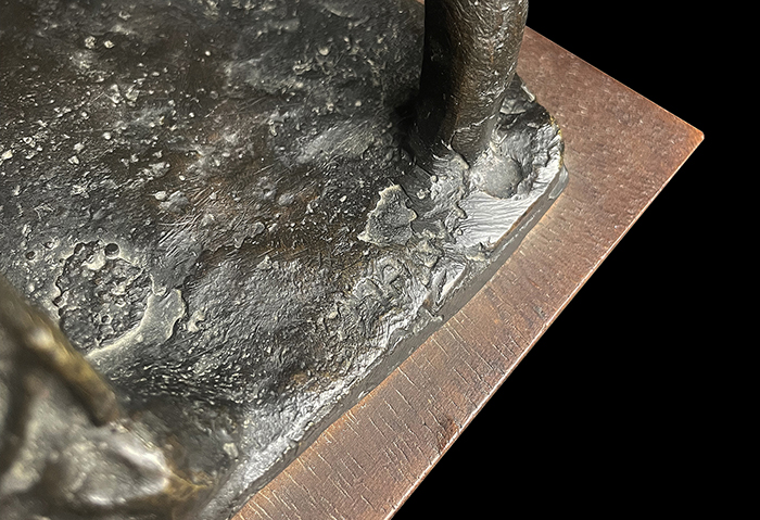 bronzo, cm 16x19x11, su base in legno cm 3x21x13
