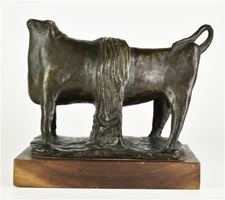 Arturo Martini (1889 - 1947) TORO bronzo, cm 16x19x11, su base in legno cm...