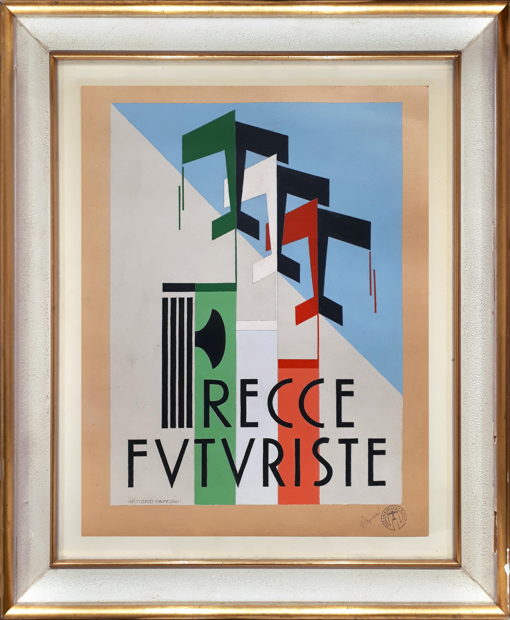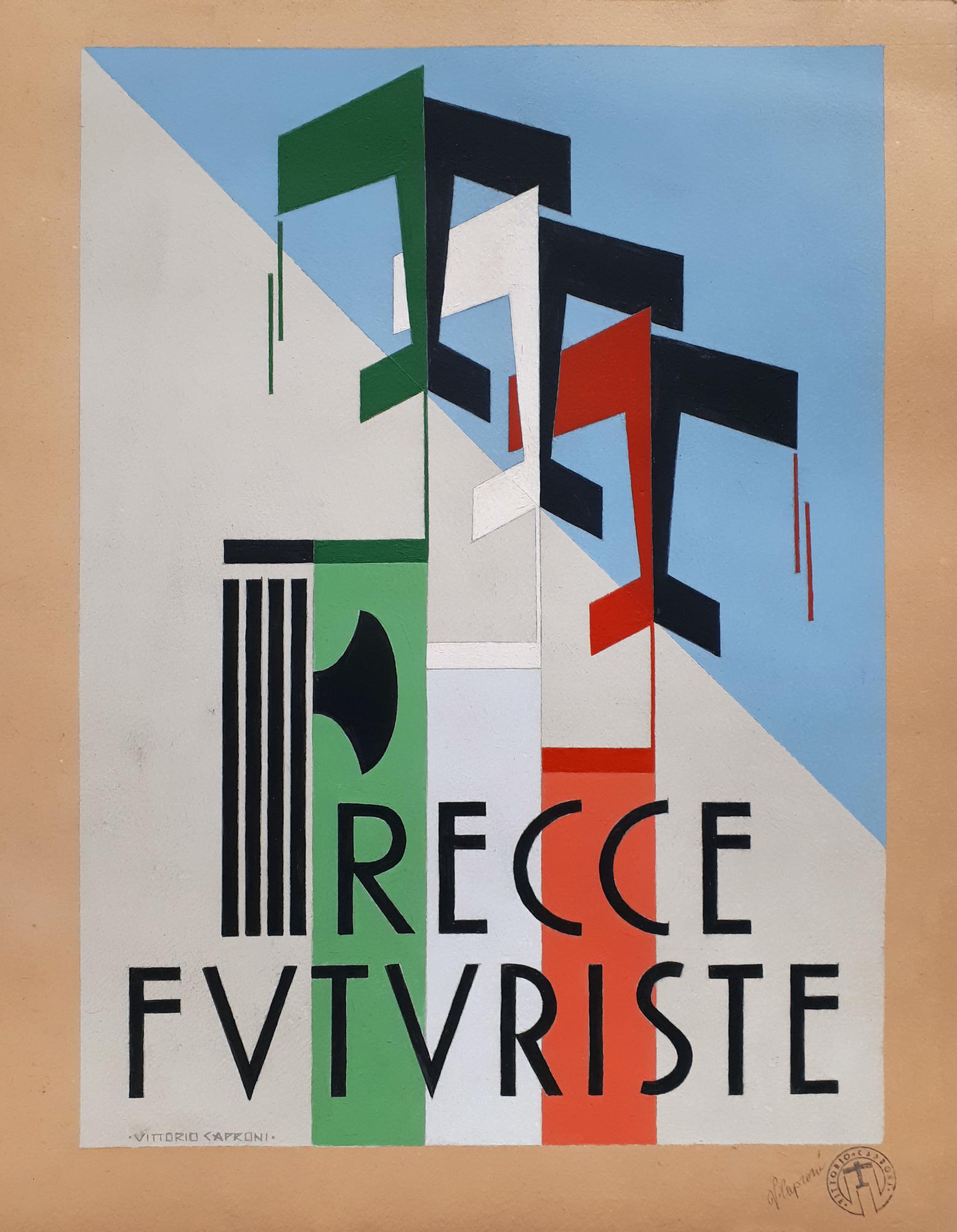 Vittorio Caproni FRECCE FUTURISTE tempera su cartoncino, cm 44x34 firme,...