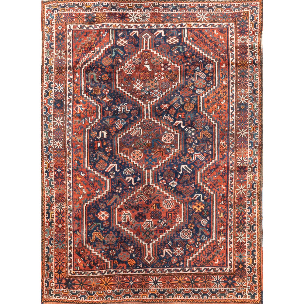 Tappeto Shiraz, trama, ordito e vello in lana.