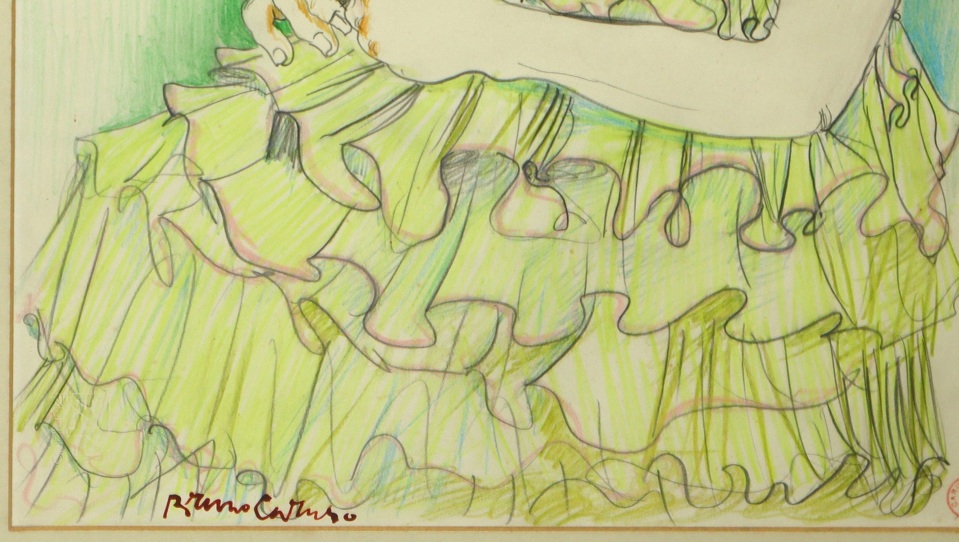 Bruno Caruso (Palermo 1927-Roma 2018) - Ragazza, 80s H cm 48x33 - in cornice H cm 70x54,5 tecnica mista su carta Firmato al fronte in basso a sinistra e timbro dell'autore al fronte in basso a destra. Autentica su foto dell’Artista.