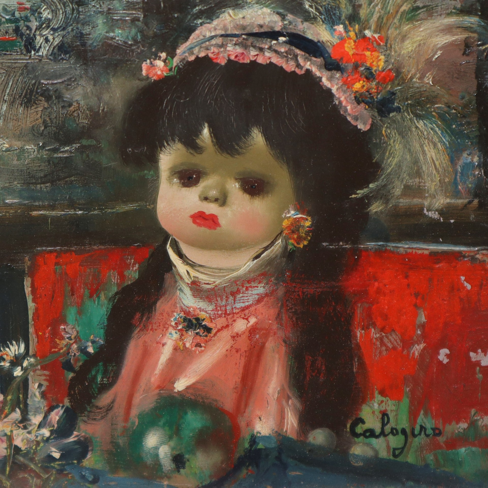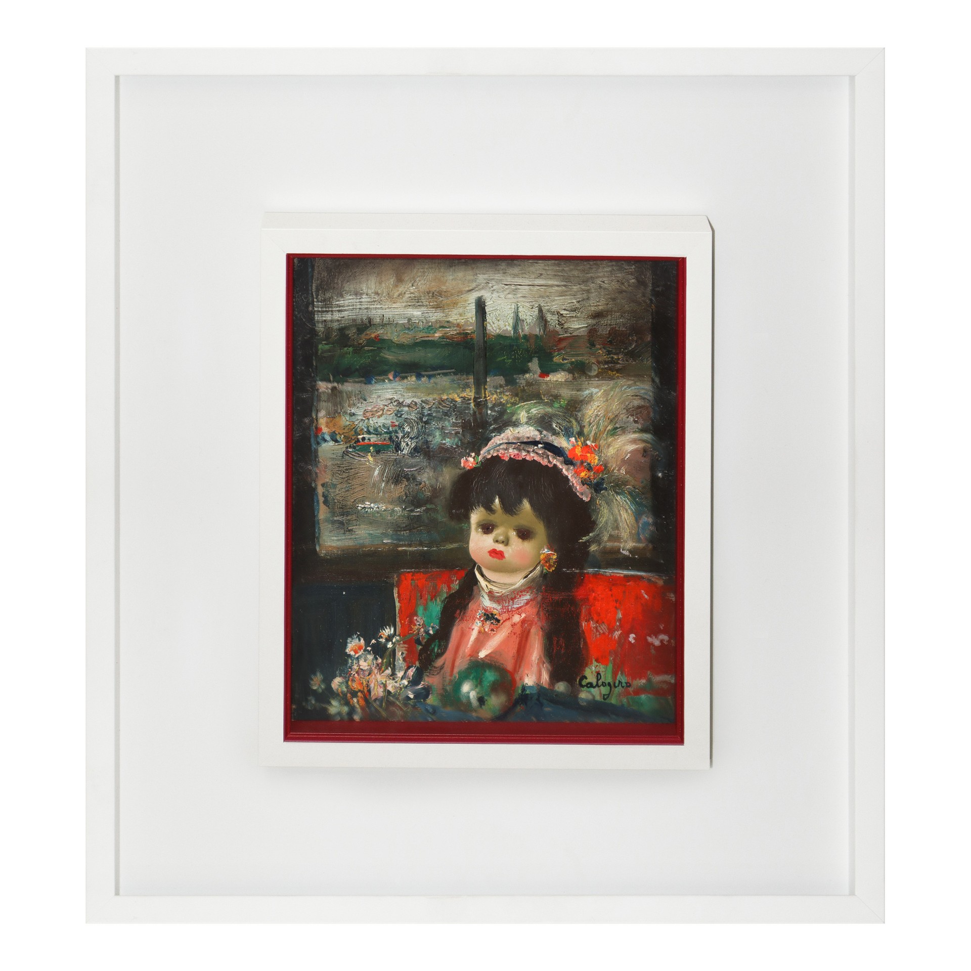 Jean Calogero (Catania 1922-Acicastello 2001) - La sedia rossa, 1952 H cm 24 x 19 (senza cornice): H cm 44 x 39 olio su tela Firmato in basso a destra; Presente autentica dell'archivio generale dell'opera di Jean Calogero (20/11/2023); Firmato dal presidente Patrizia Calogero