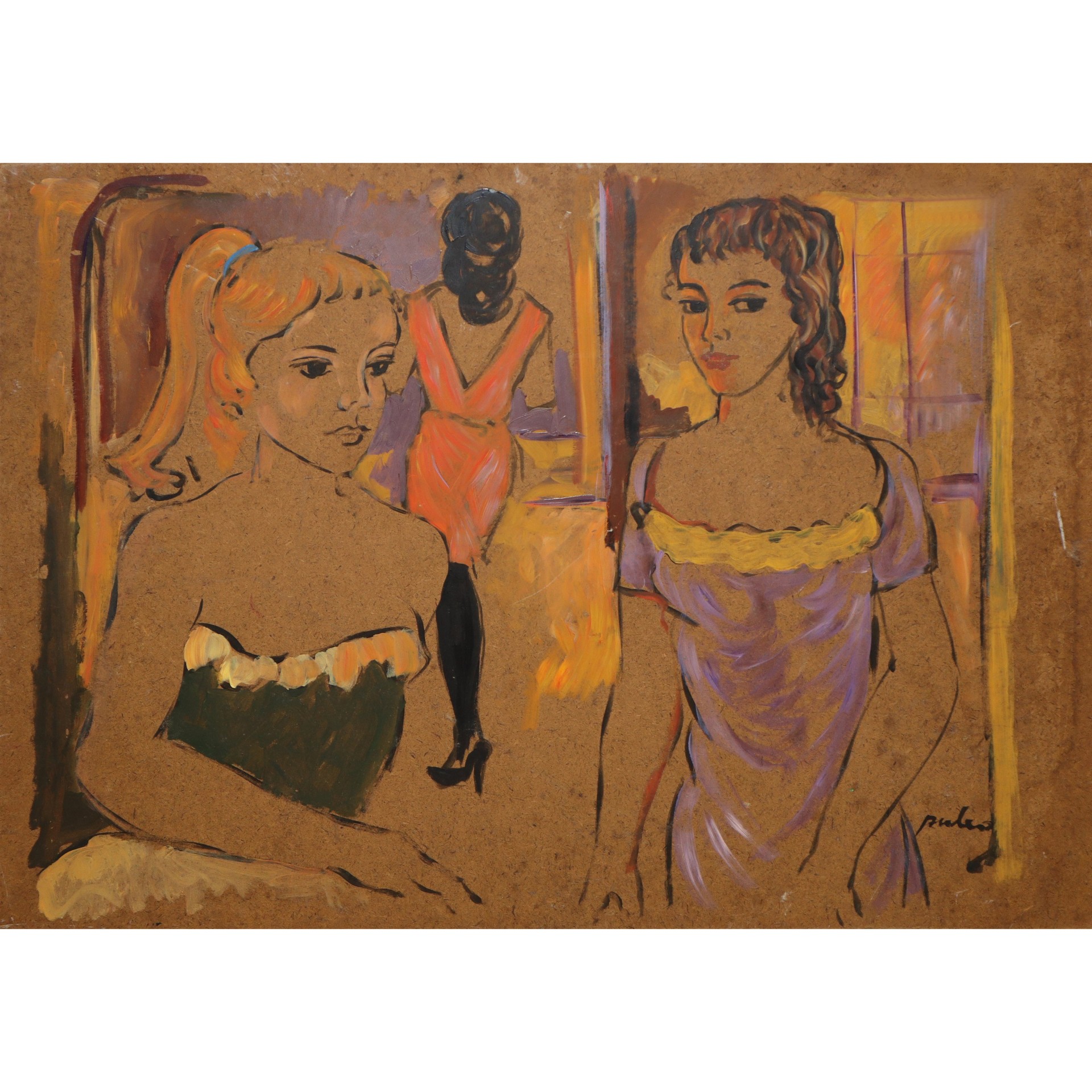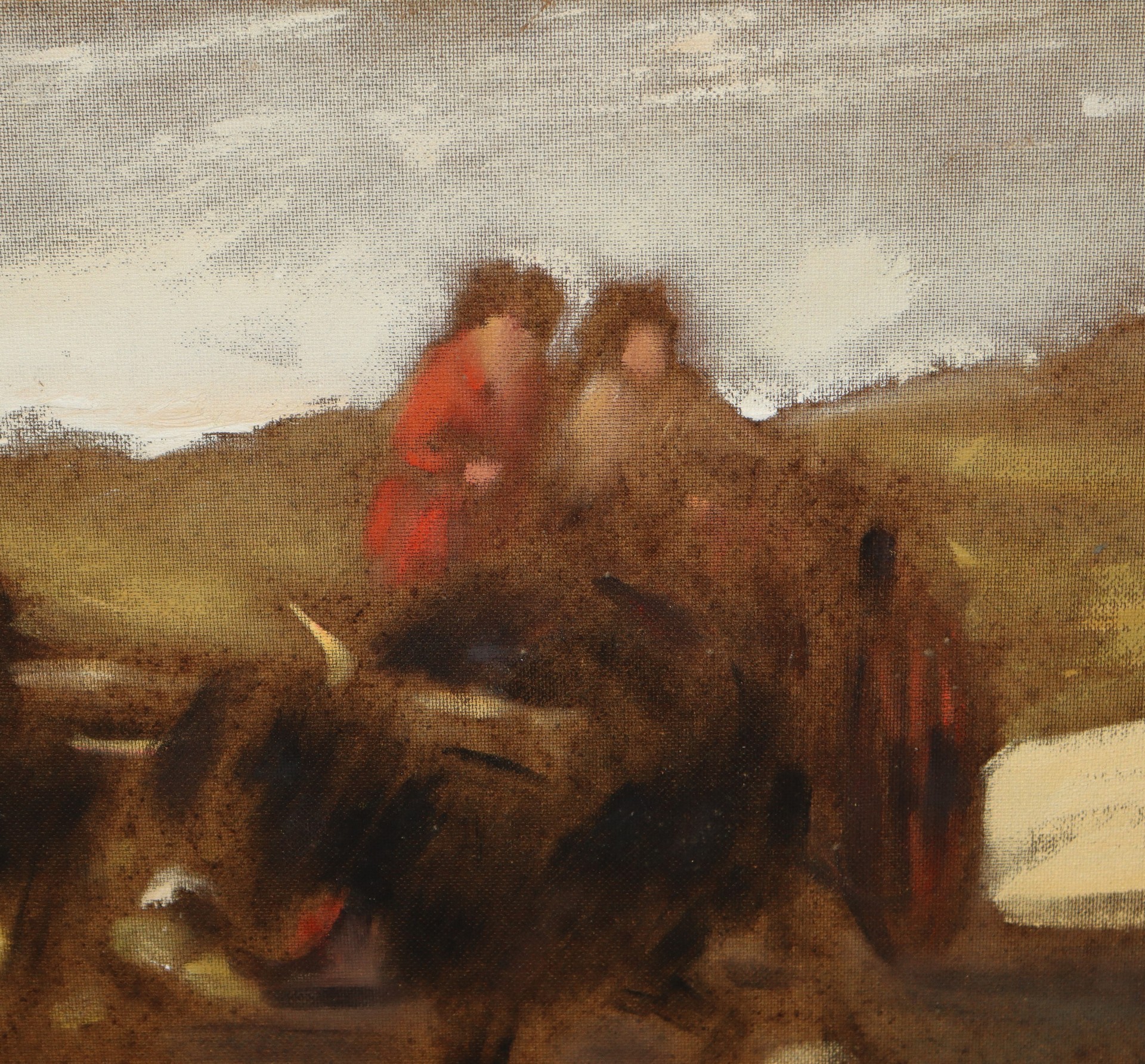 Albino Lorenzo (Tropea 1922-2005) - Donne con buoi, 60s/70s H cm 70x50 Olio su masonite