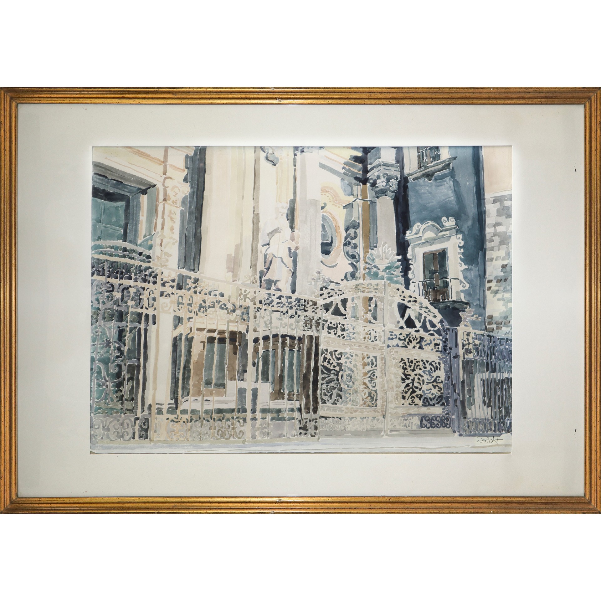 Fran Wolok - Cancelli della Cattedrale di Catania H cm 54x75 - in cornice H cm 74x105 Acquerello Firmato in basso a destra.