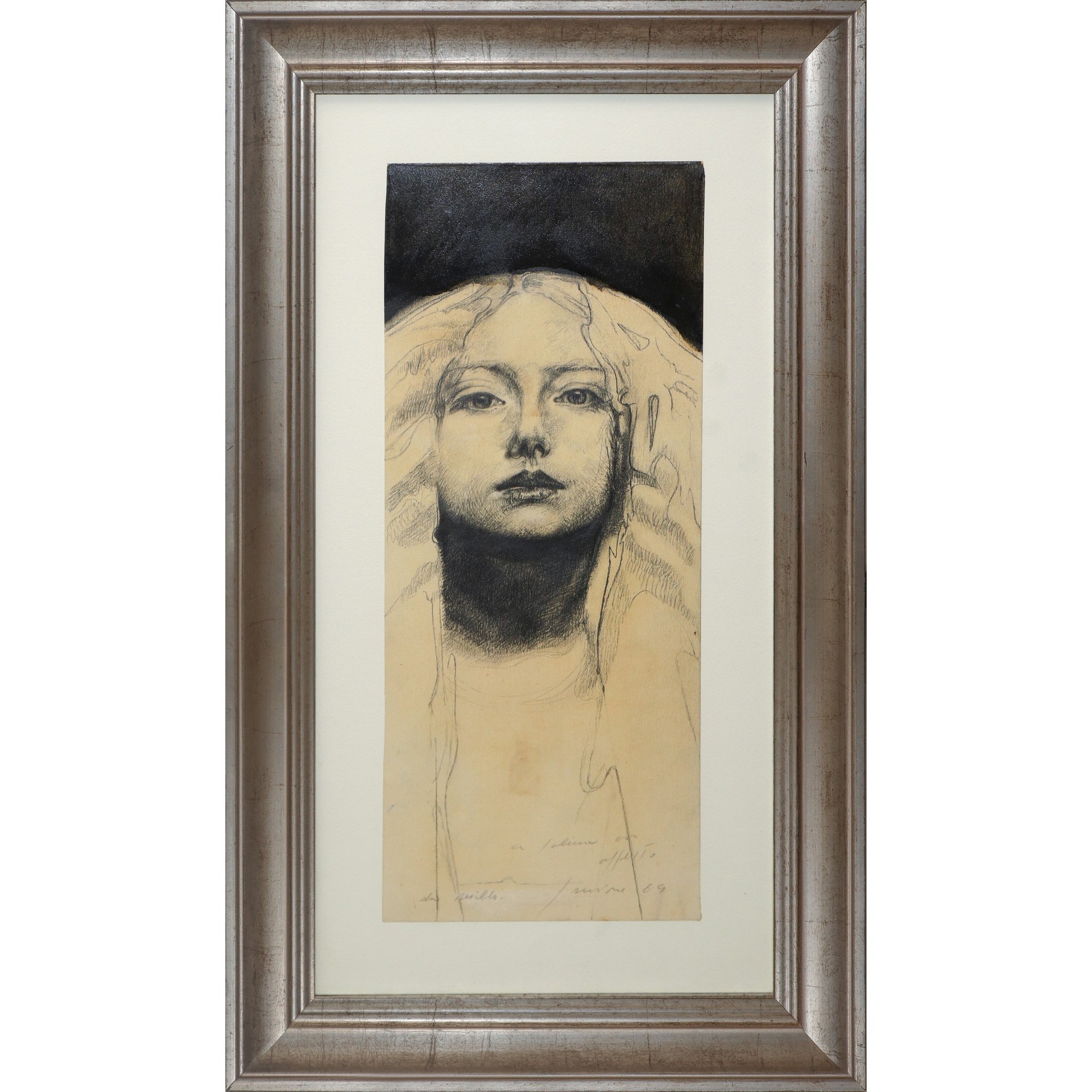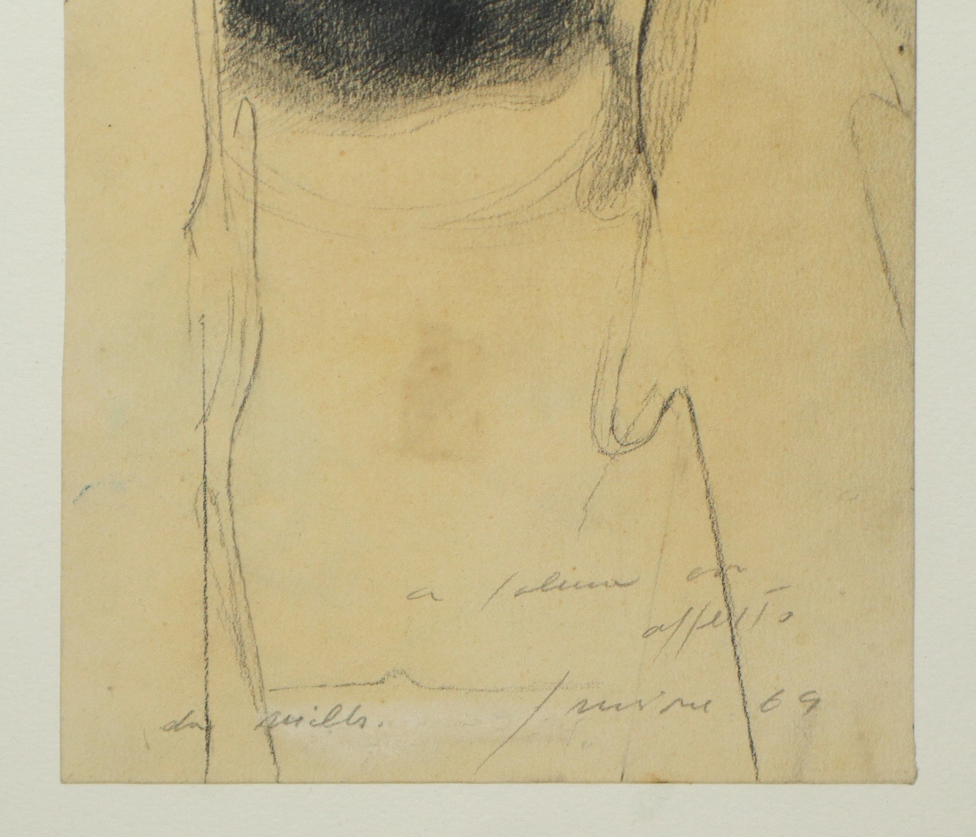 Piero Guccione (Scicli 1935-Modica 2018) - Donna, 1969 Cm 38x16 in cornice cm 53x30 Tecnica mista su carta (matita , olio e tempera) Firma, anno, dedica e firma al fronte