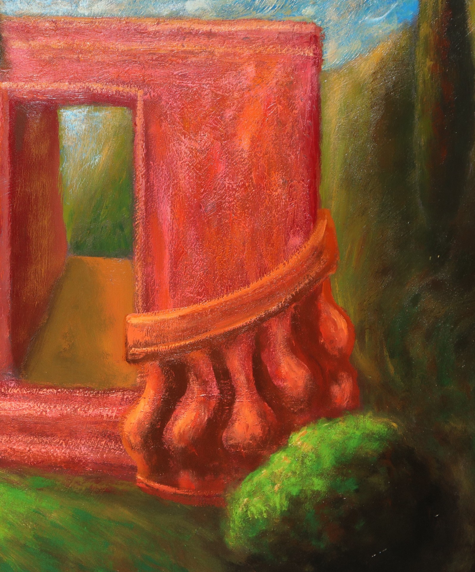 Gaetano Tranchino (Siracusa 1938) - Di sera in giardino, 2009 H cm 60x80 Olio su tela Al retro firmato, datato e titolato. Mostra: Gaetano Tranchino - Opere 2002-2005, 05-26 Novembre 2005, Galleria 61, Palermo. Autentica su foto dell’Artista