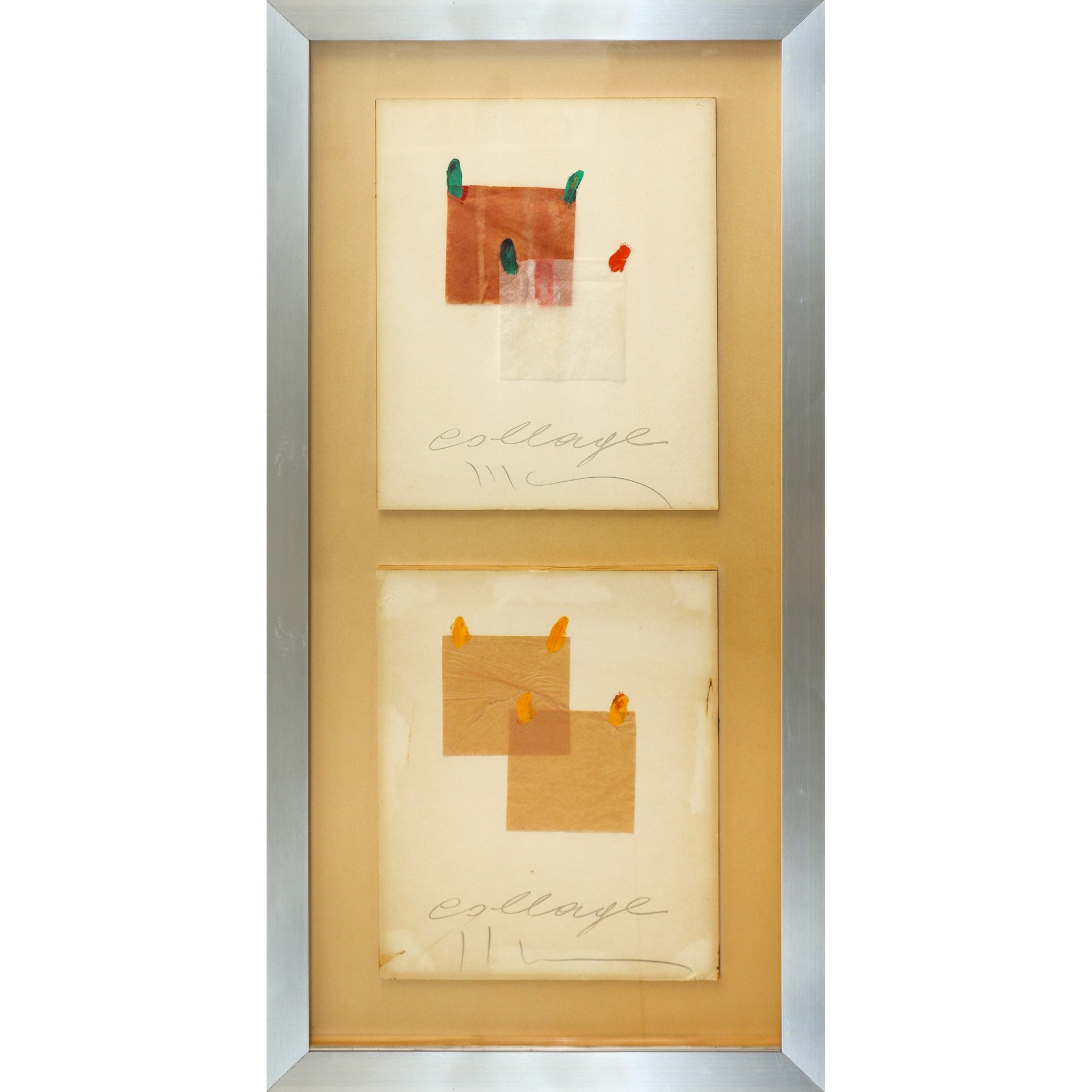 Aldo Mondino (Torino 1938-Torino 2005) - Collage, coppia di tecniche miste su carta a pplicata su tavola