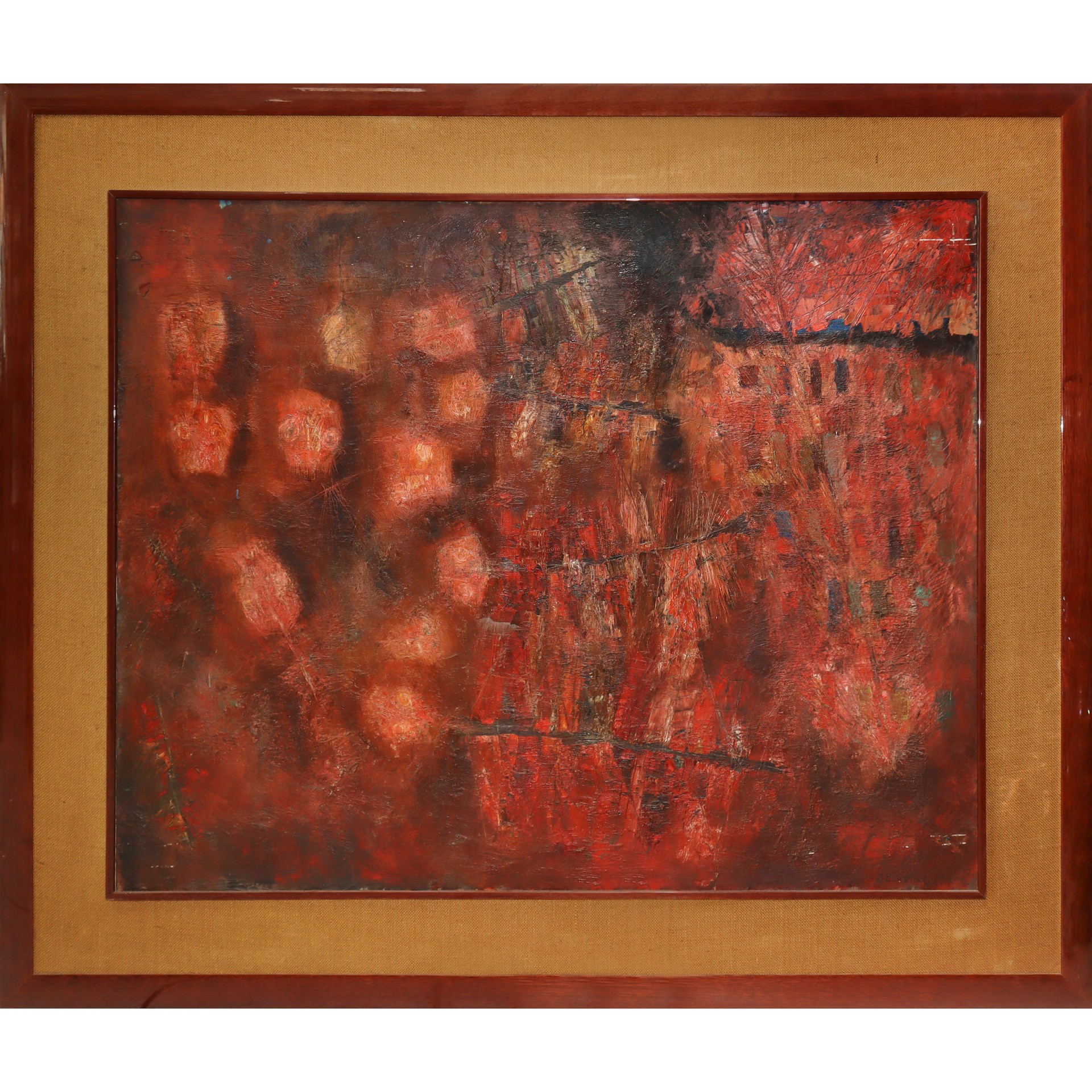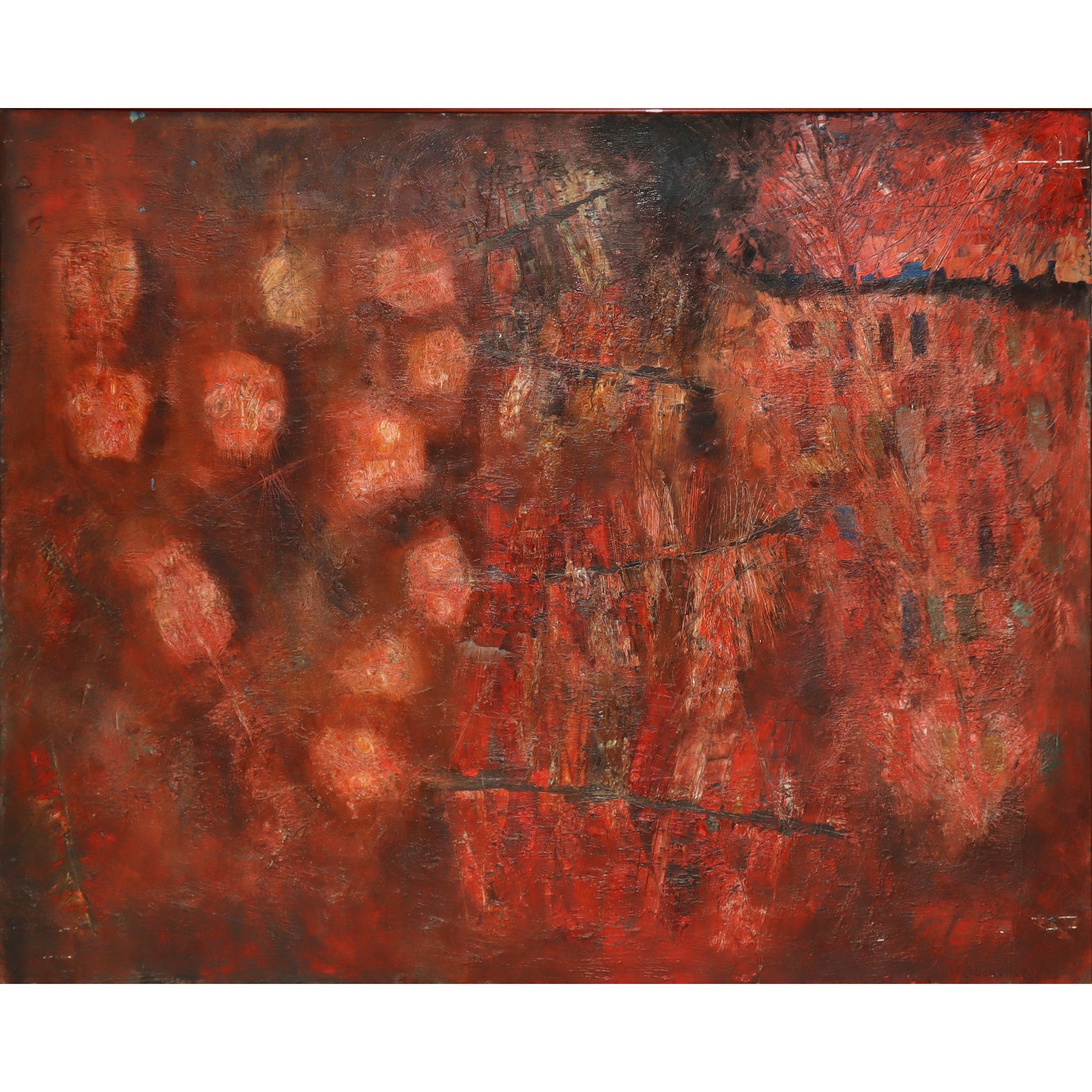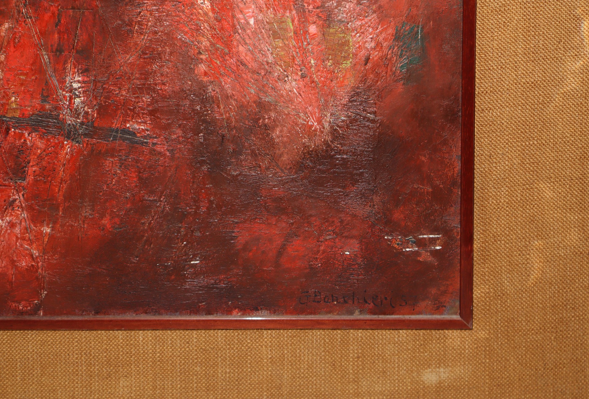 Giuseppe Banchieri (Milano 1927-Ronchi di Massa 1994) - Lische di pesce e paesaggio. , 1957 Cm 80x90, in cornice 107x127 Olio su tela Firmato in basso a destra, titolato e datato al retro.