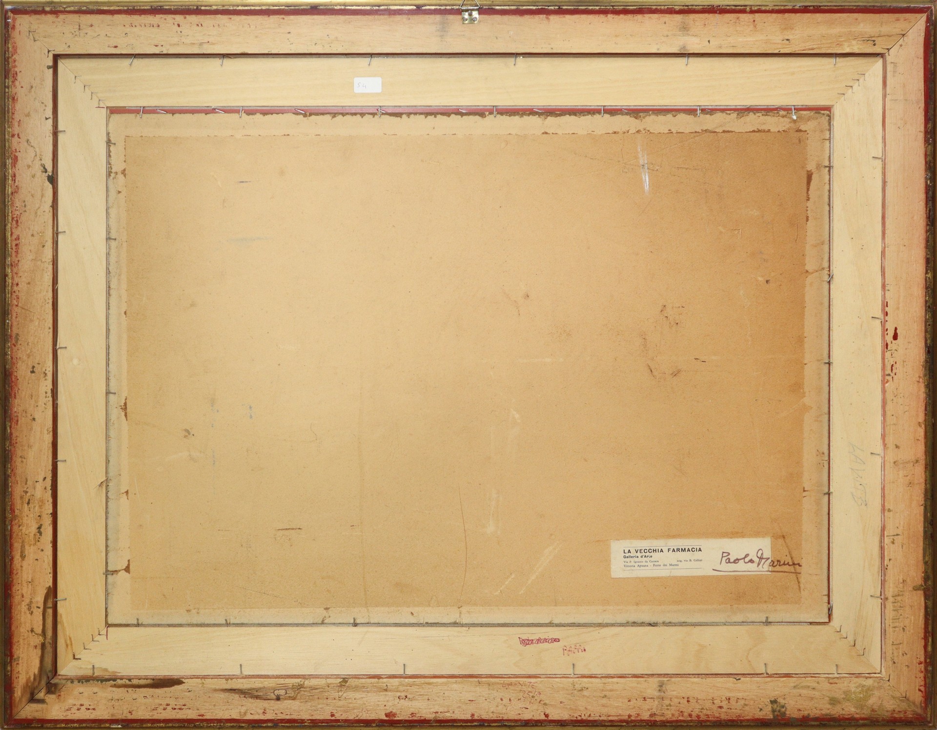 Sergio Vacchi (Castenaso 1/04/1925-Siena 14/01/2016) - Nudo di donna nell'acqua, 1969 cm 50 x 71, in cornice 72 x 92 Tecnica mista su masonite Firmato in basso a sinistra e datato '69, etichetta La Vecchia Farmiacia di Paola Marini