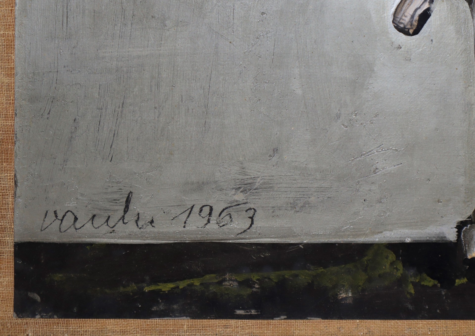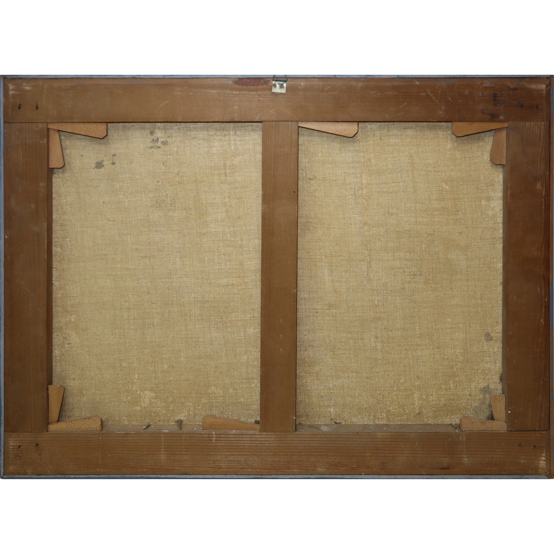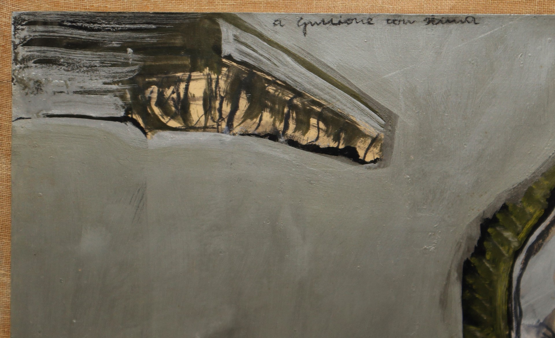 Sergio Vacchi (Castenaso 1/04/1925-Siena 14/01/2016) - Senza titolo, 1963 cm 54x74 Olio su carta applicata a tela Firmata e datata sul fronte in basso a sinistra. Dedicata al Maestro Piero Guccione in alto a sinistra