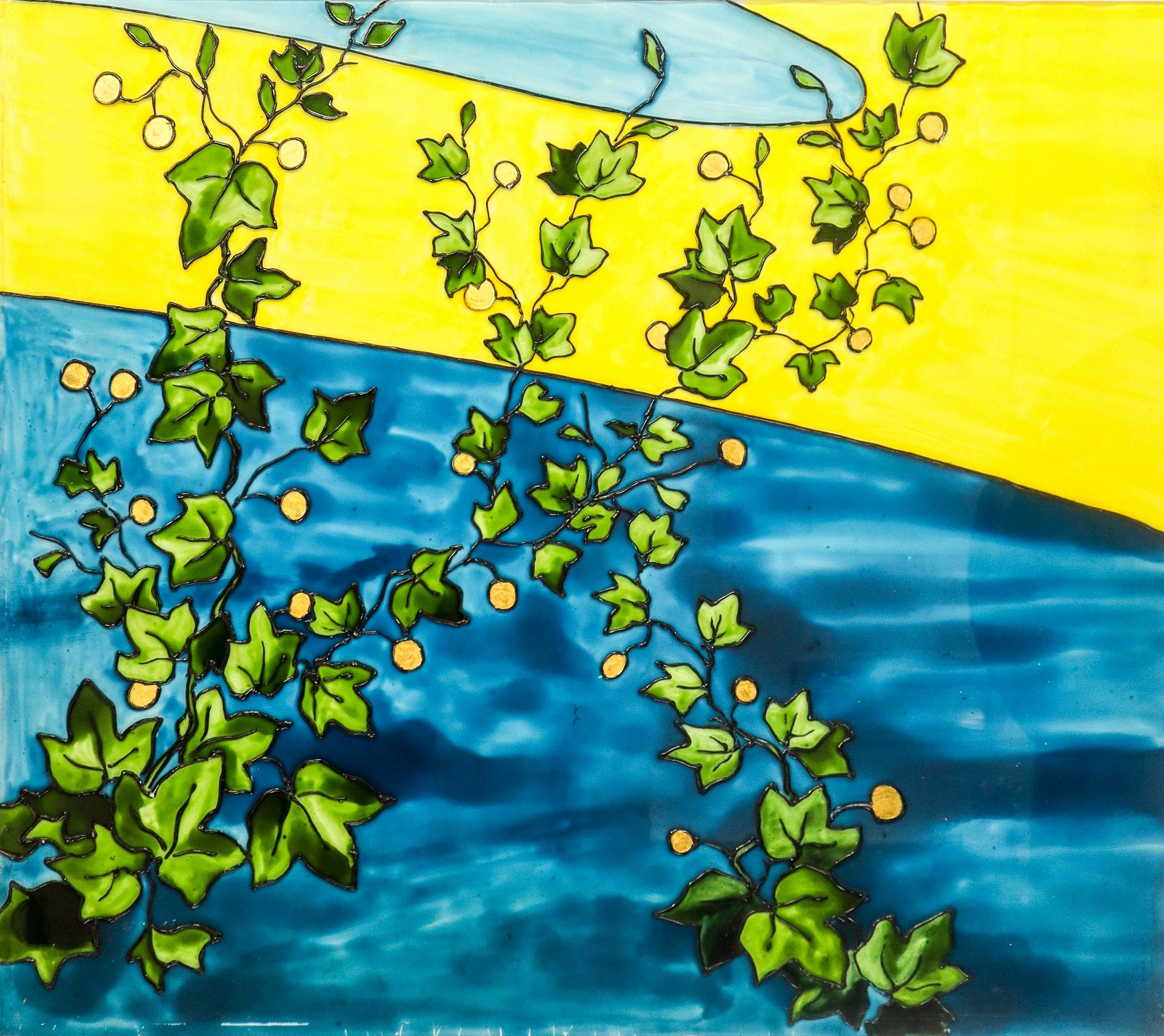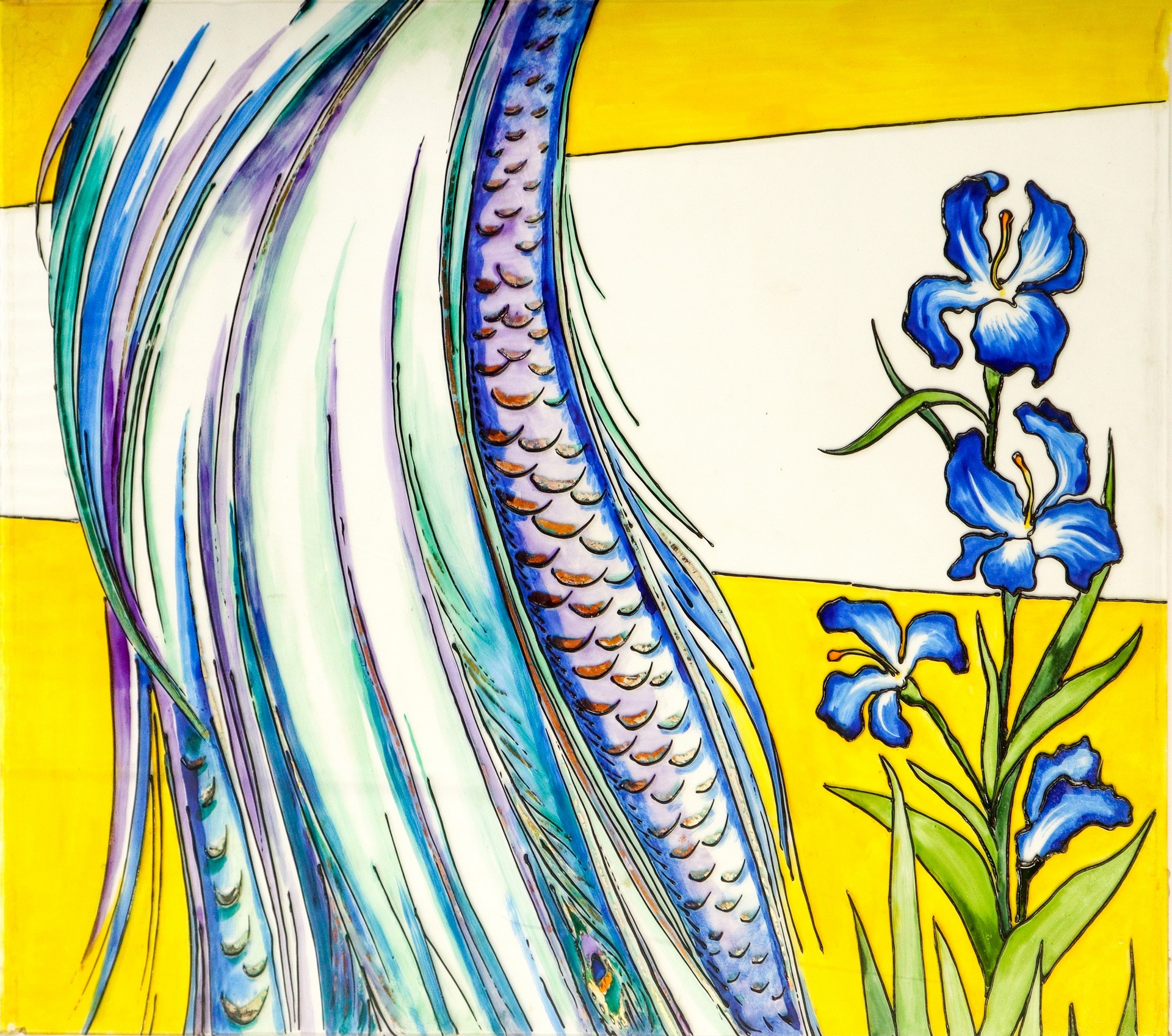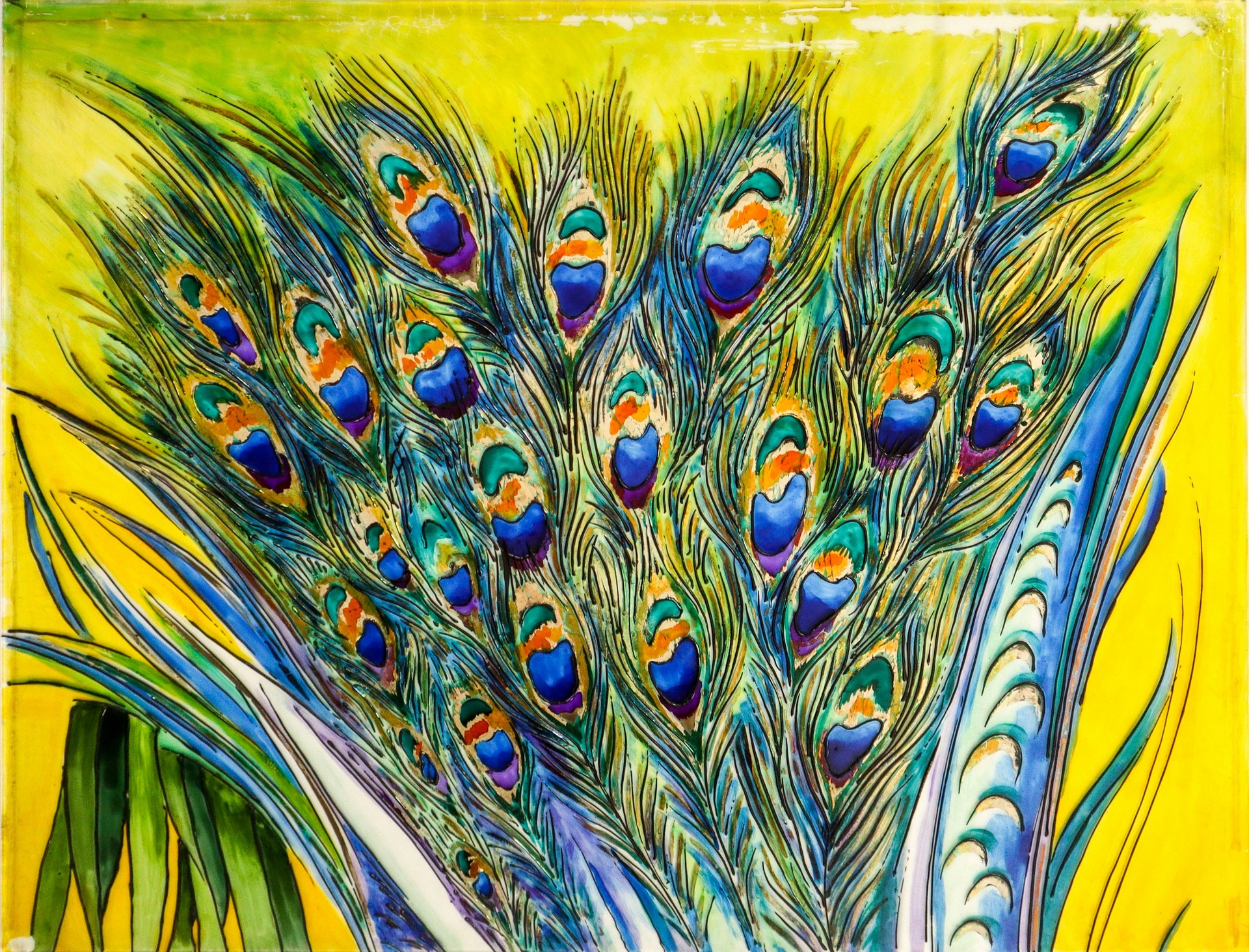Francesco Contrafatto (Catania 1928-Catania 2015) - Grande vetrata raffigurante pavone e fiori, 1981
