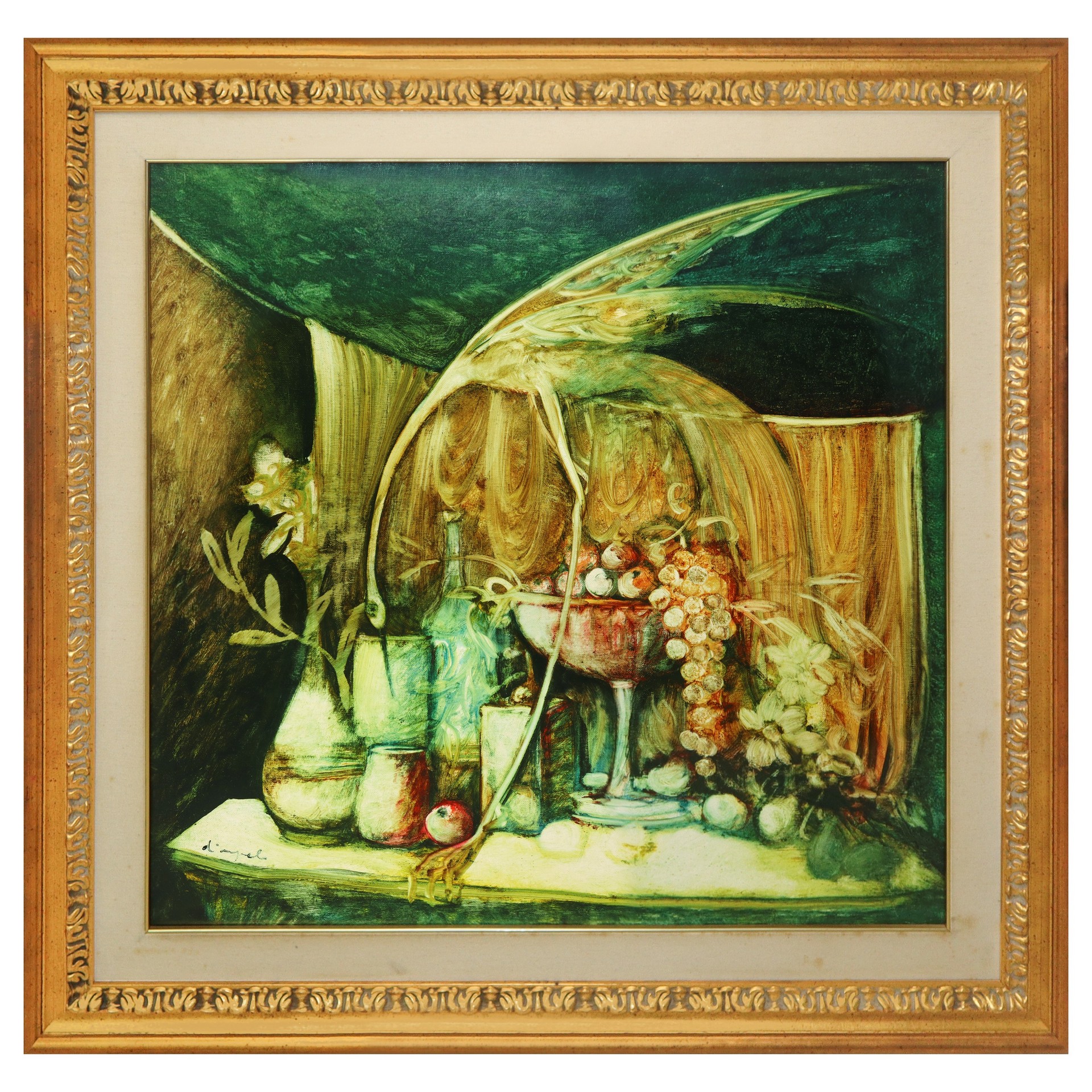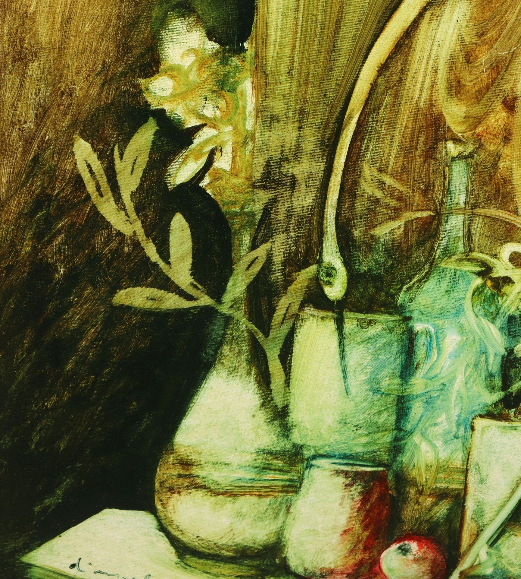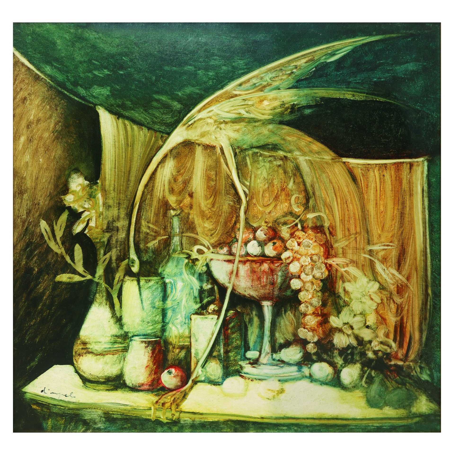 Cesare D'Angelo (Catania 1940-2006) - Natura morta con uccello H cm 80x80 - in cornice H cm 105x105 Olio su tela Firmato in basso a sinistra