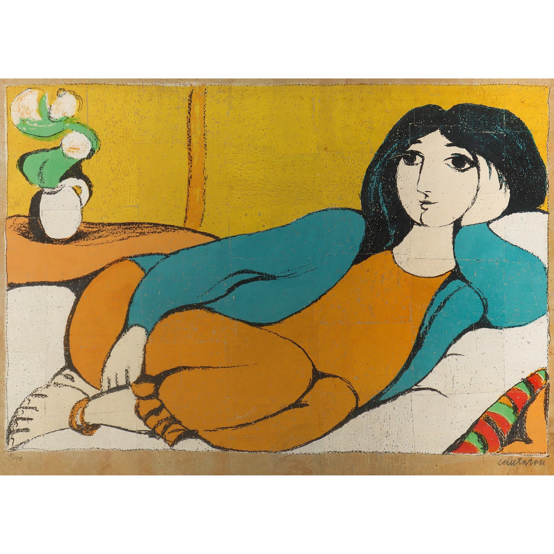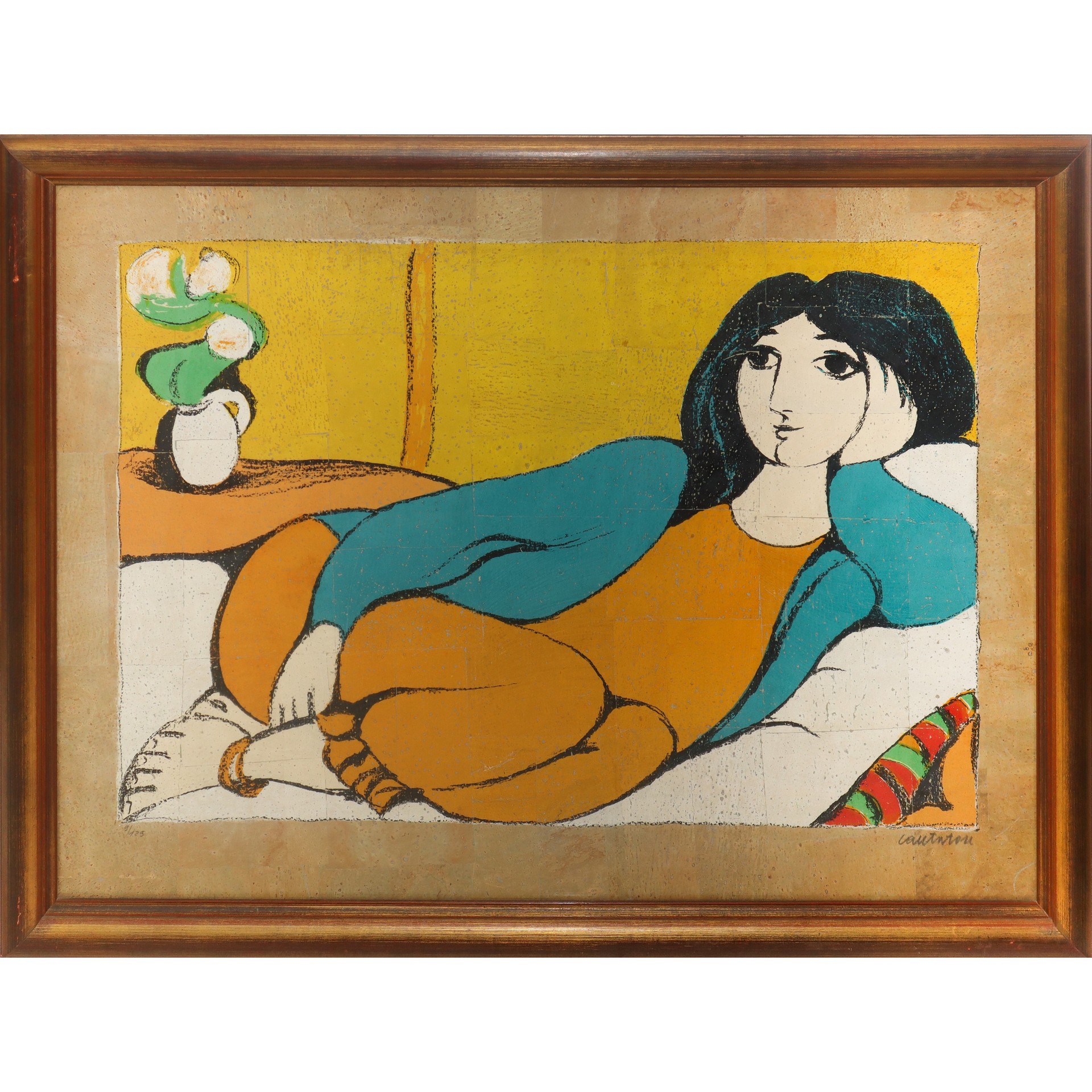 Domenico Cantatore (Ruvo di Puglia 1906-Parigi, Francia 1998) - Donna sdraiata H cm 55x73 - in cornice H cm 63x82 litografia Esemplare 9/125. Firmato in basso a destra.