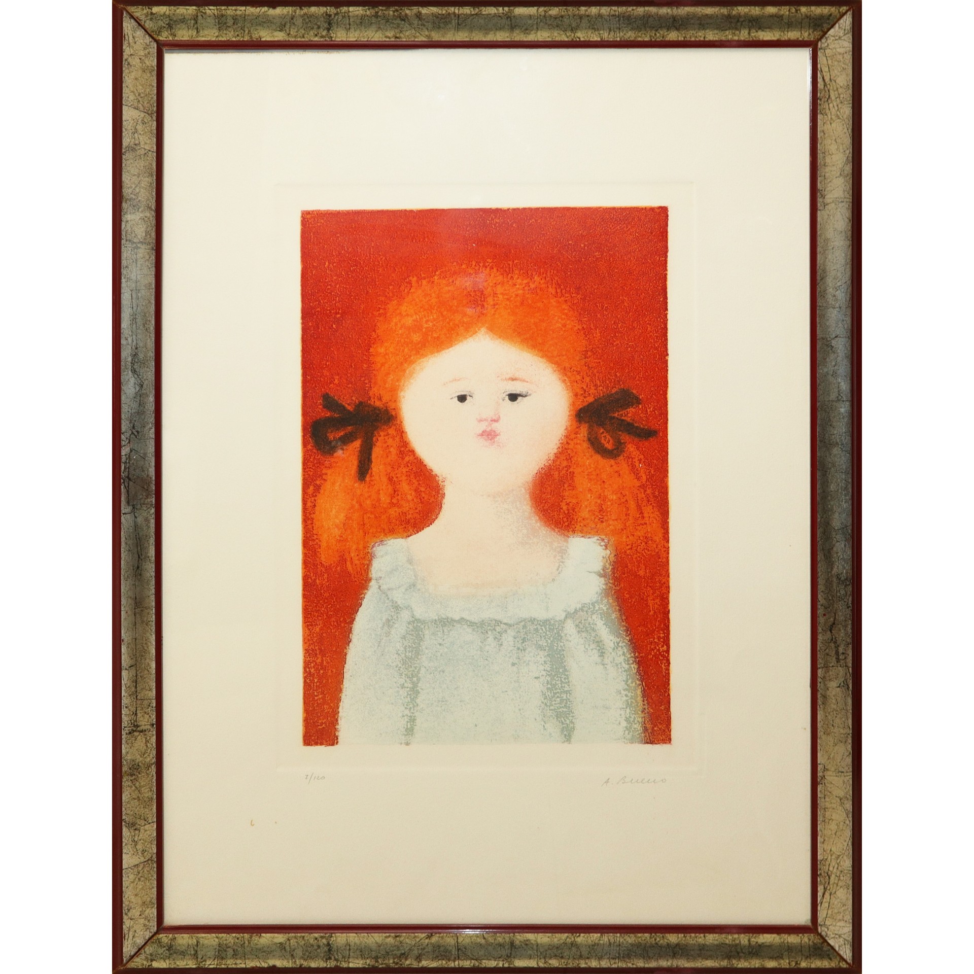 Antonio Bueno (berlino 1918-Firenze 1984) - Bambina con i capelli rossi H cm 46x31 - in cornice H cm 77x57 litografia Esemplare 7/120. Firmato in basso a destra.