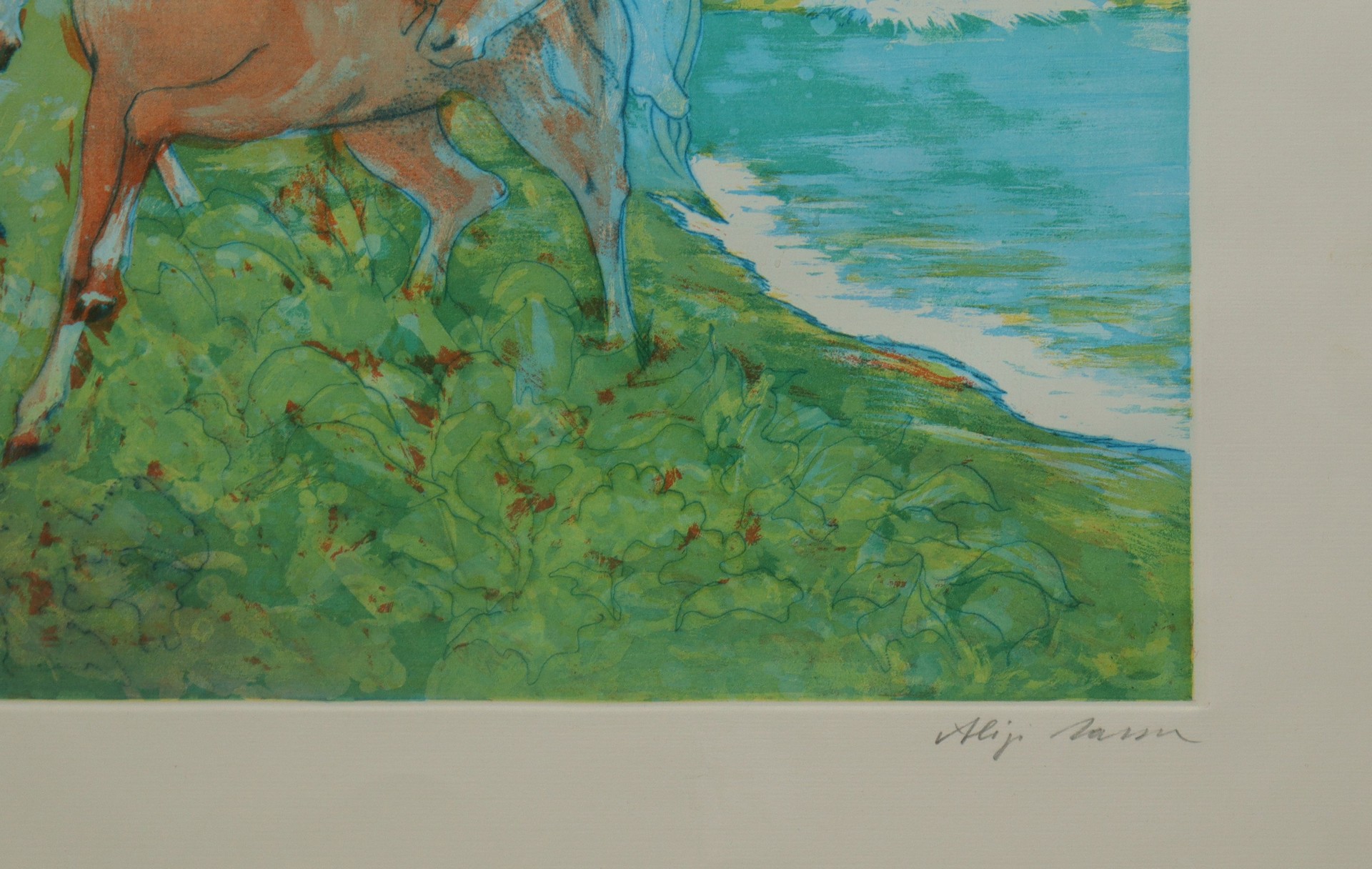 Aligi Sassu (Milano 17/07/1912-Pollença 17/07/2000) - Patroclo in cornice H cm 73x95 litografia Prova D'Autore