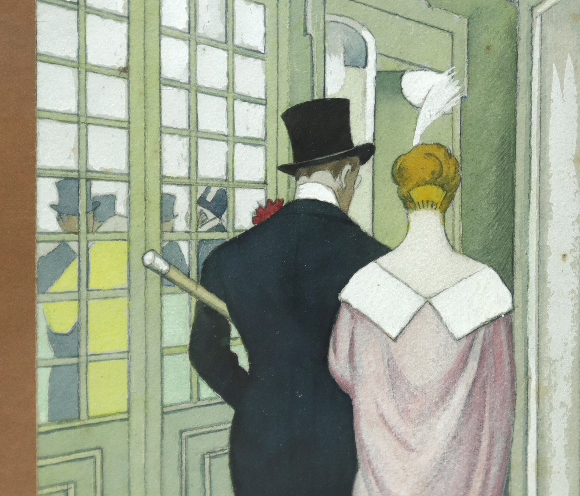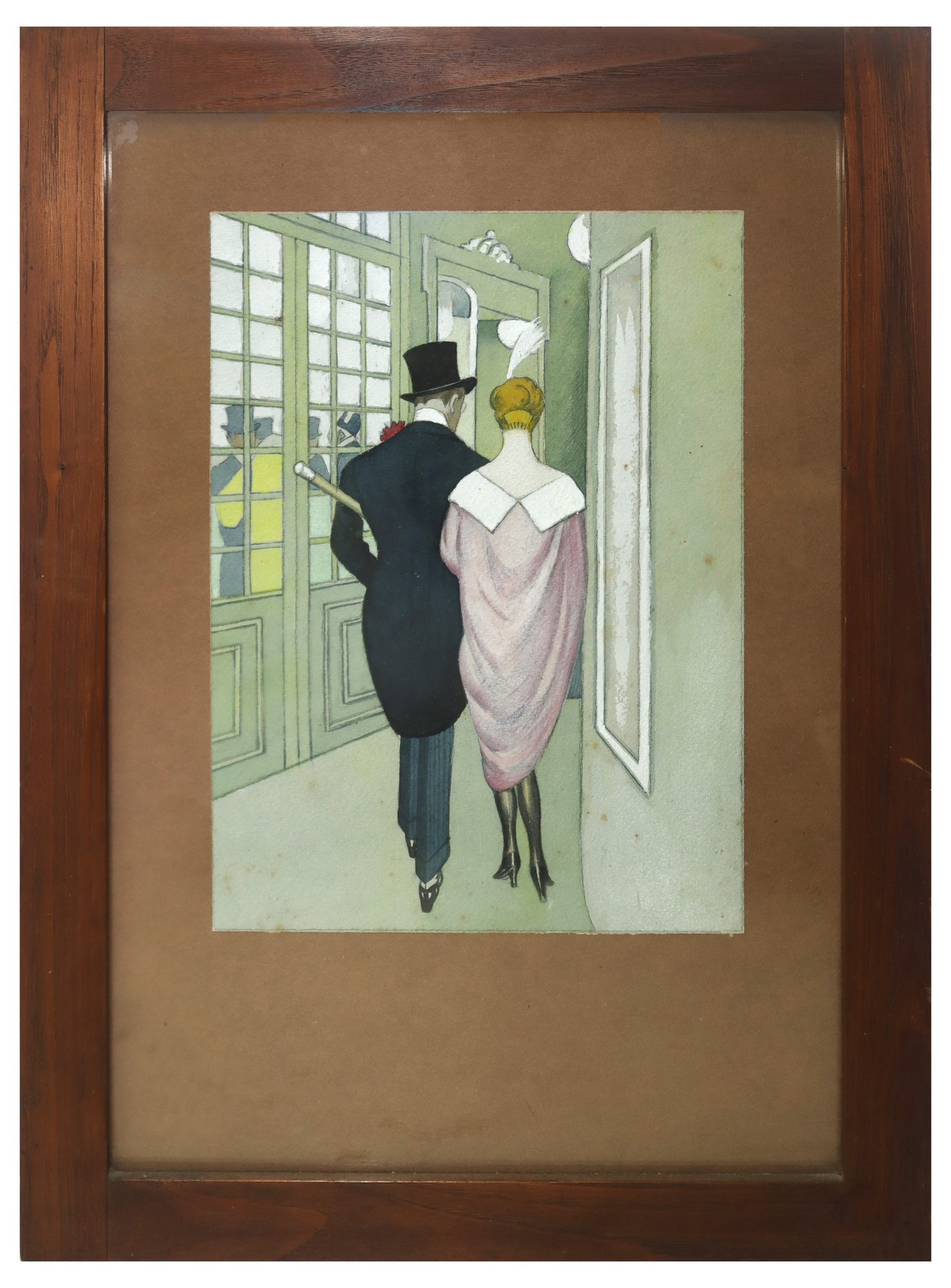 Marcello Dudovich (Trieste 1878-Milano 1962) - Elegante coppia di personaggi di spalle, vintage, 1920s cm 28,8 x 20, in cornice 47,5 x 34,5 tempera e matita su cartoncino
